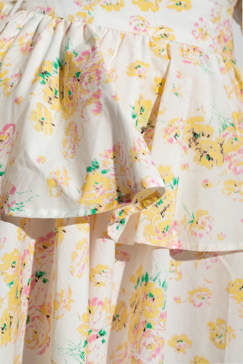 Multicolored ‘Robyn’ skirt from Custommade. Crafted from organic cotton, this design features a side zip, floral pattern and ruffle trims.