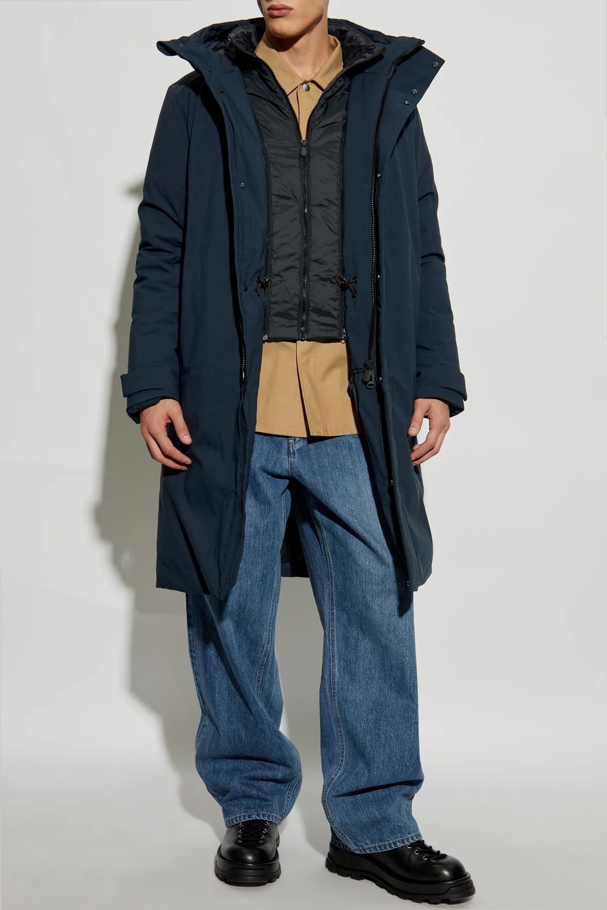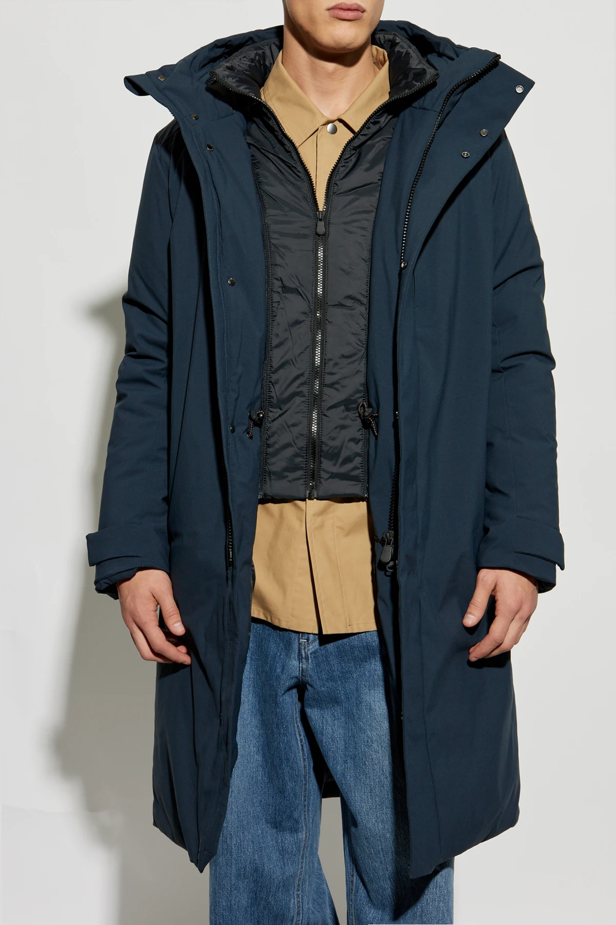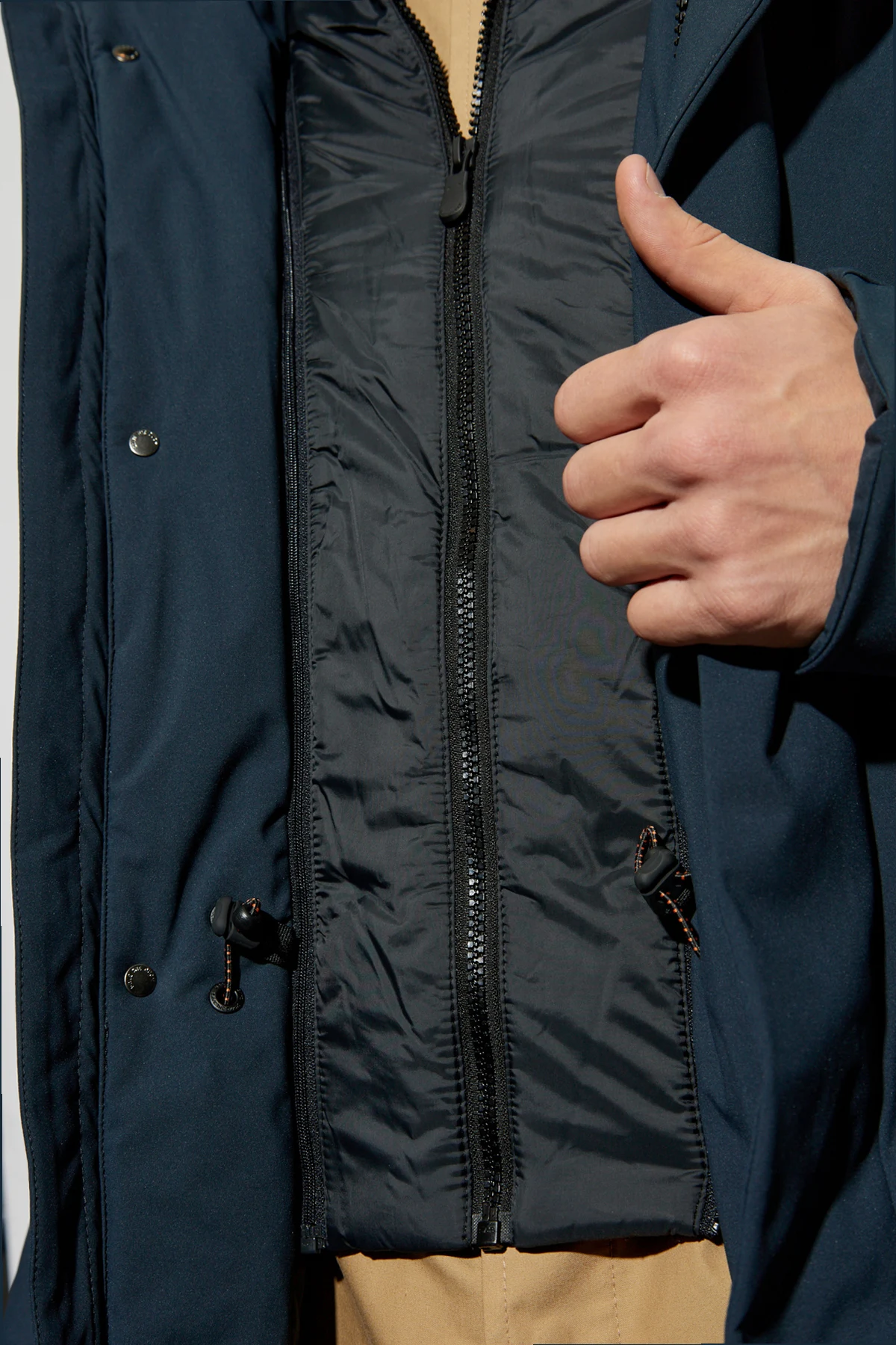 Introducing the \"Roderick\", a sophisticated quilted jacket by the renowned Italian designer Save The Duck. This elegant navy coat embodies a minimalist aesthetic with its straight, classic silhouette extending gracefully to the knees. Crafted from smooth, possibly water-resistant material, this jacket is designed to fend off the chill with its integrated hood and snug fit. The Roderick features a dual-closure system: a zipper concealed beneath a placket with snaps, ensuring an extra layer of warmth and security. For added functionality, it includes two zippered pockets at the hips and adjustable elements at the waist and cuffs for a tailored fit. Embrace the brand\'s commitment to ethical fashion, as Save The Duck utilizes innovative PLUMTECH® technology to mimic the thermal properties of natural down, all while remaining cruelty-free. Why Choose This Product? Timeless, versatile design suitable for any winter wardrobe. Crafted with ethical, animal-friendly materials. Innovative thermal insulation for superior warmth. Practical features including adjustable fit and secure pockets.
