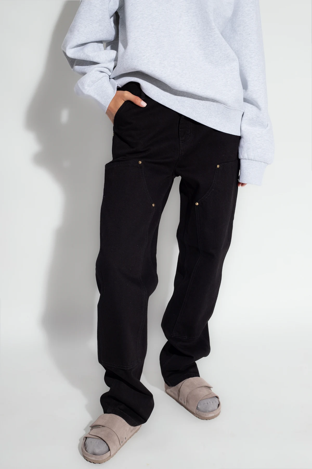Black jeans from Carhartt WIP. Made of cotton, this pair features multiple pockets and logo patches.