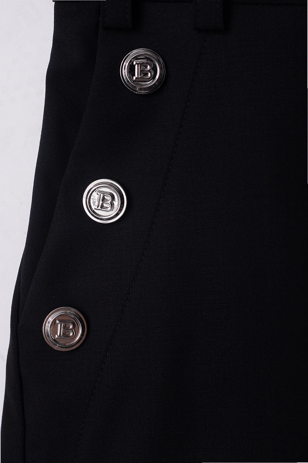 Black shorts from Balmain Kids. Made of wool, this pair features a zip fly with a snap, two slip pockets, turn-up hems and decorative buttons with an engraved logo.