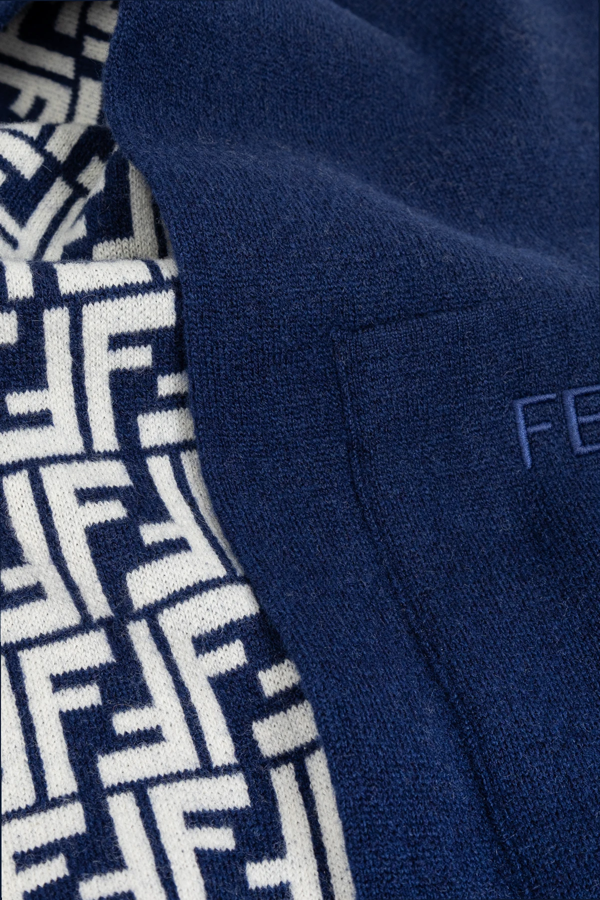 Introducing the Fendi Kids Pocket Scarf, a pinnacle of sophistication and practicality from the esteemed designer Fendi. This exclusive piece from the Kids Accessories collection exemplifies elegance and comfort, making it the perfect addition to your child\'s wardrobe. Crafted in a rich navy hue, this scarf is composed of a luxurious blend of wool, cashmere, and polyamide, ensuring unparalleled softness and warmth. The interior showcases the iconic \"FF\" monogram in white, a hallmark of Fendi\'s timeless style, while the exterior is subtly adorned with the embroidered \"FENDI ROMA\" logo near the discreetly integrated pocket. Ideal for cooler days, this minimalist yet chic scarf provides both style and functionality. The cleverly designed pocket adds an extra layer of convenience, making it a versatile accessory for any occasion. Why Choose This Product? High-quality materials: a blend of wool, cashmere, and polyamide. Exclusive design featuring Fendi\'s signature \"FF\" monogram. Subtle branding with the \"FENDI ROMA\" logo. Practical and stylish pocket integration. Perfect for adding a touch of luxury to your child\'s ensemble.