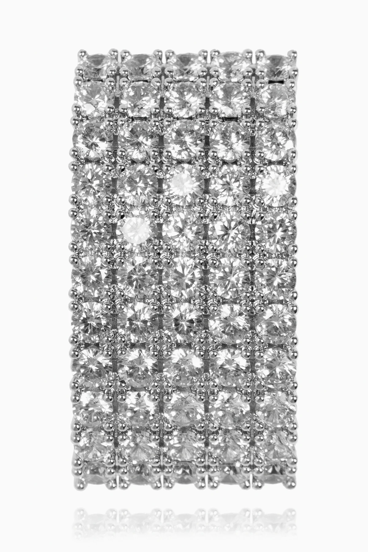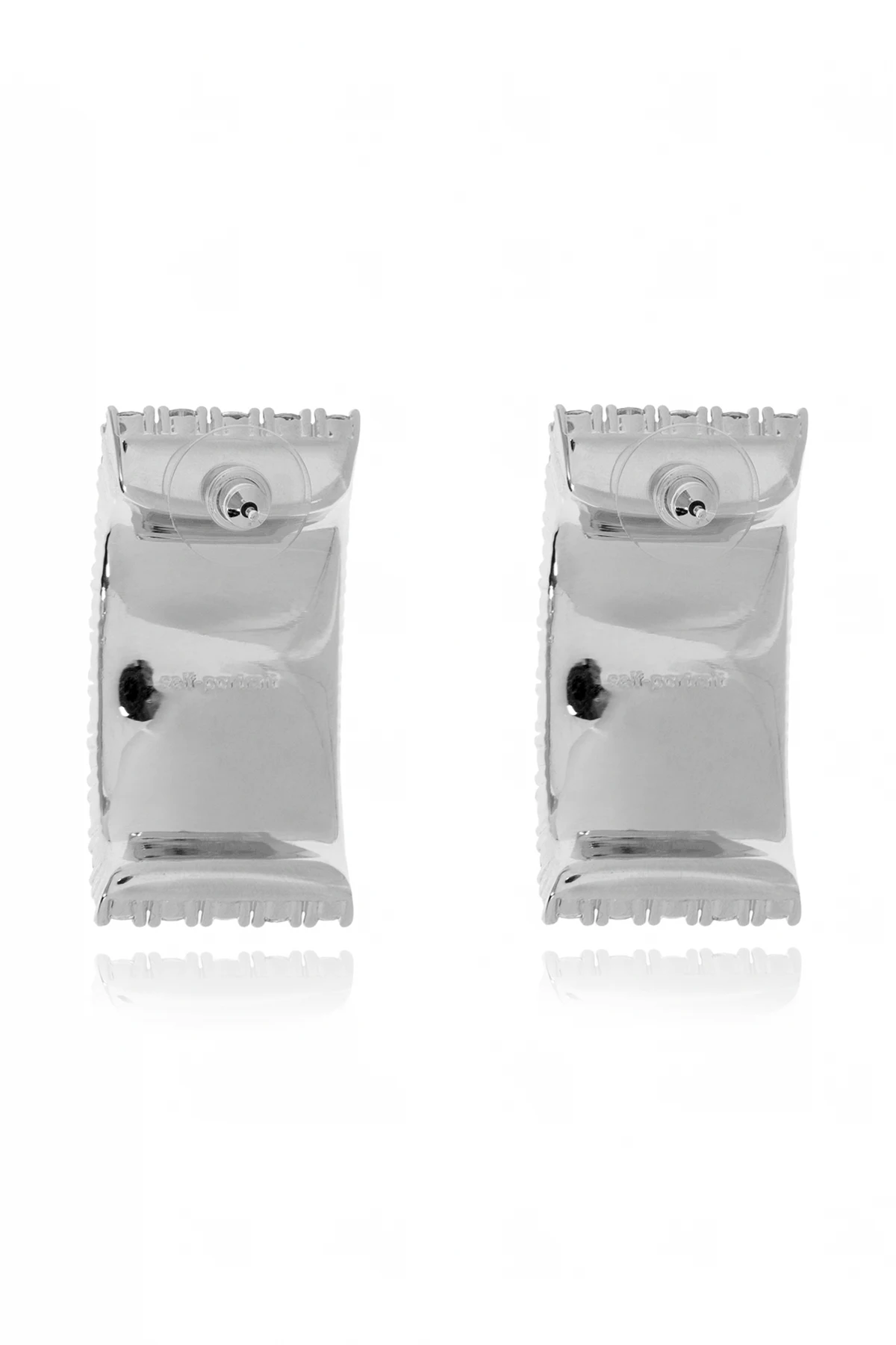 Introducing the Shimmering Crystal Earrings by the distinguished designer Self-Portrait. These exquisite earrings boast a rectangular, subtly curved shape, accentuated by an intricate array of glistening crystals that cast a mesmerizing sparkle. Crafted from silver-hued metal and adorned with lustrous crystals, these earrings are a testament to refined elegance. The classic post-back closure ensures a secure and comfortable fit, making them an ideal choice for evening wear. Designed with a keen eye for romantic detail, these earrings embody Self-Portrait\'s ethos of creating luxury at accessible prices, offering a distinctive style that captures attention effortlessly. Why Choose This Product? Exquisite design with a unique rectangular and curved shape. Adorned with shimmering crystals for a dazzling effect. High-quality materials: glass and brass. Secure post-back closure for comfort and ease. Signature style from the renowned Self-Portrait designer.