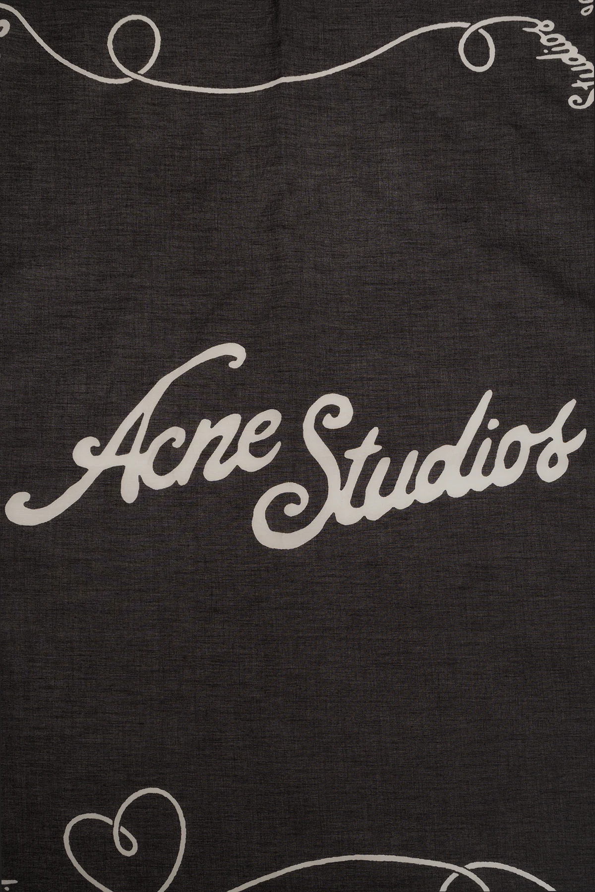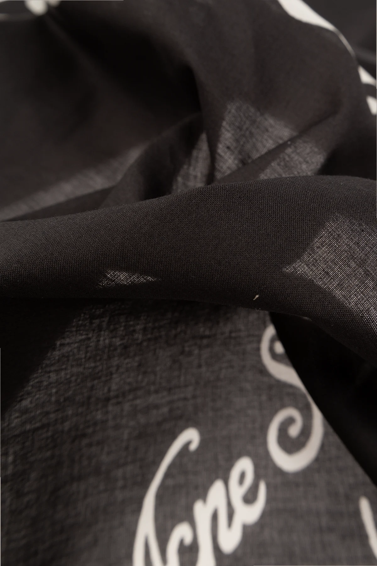 Black and white shawl from Acne Studios. Made of cotton, this item showcases a logo pattern accompanied by a floral motif.
