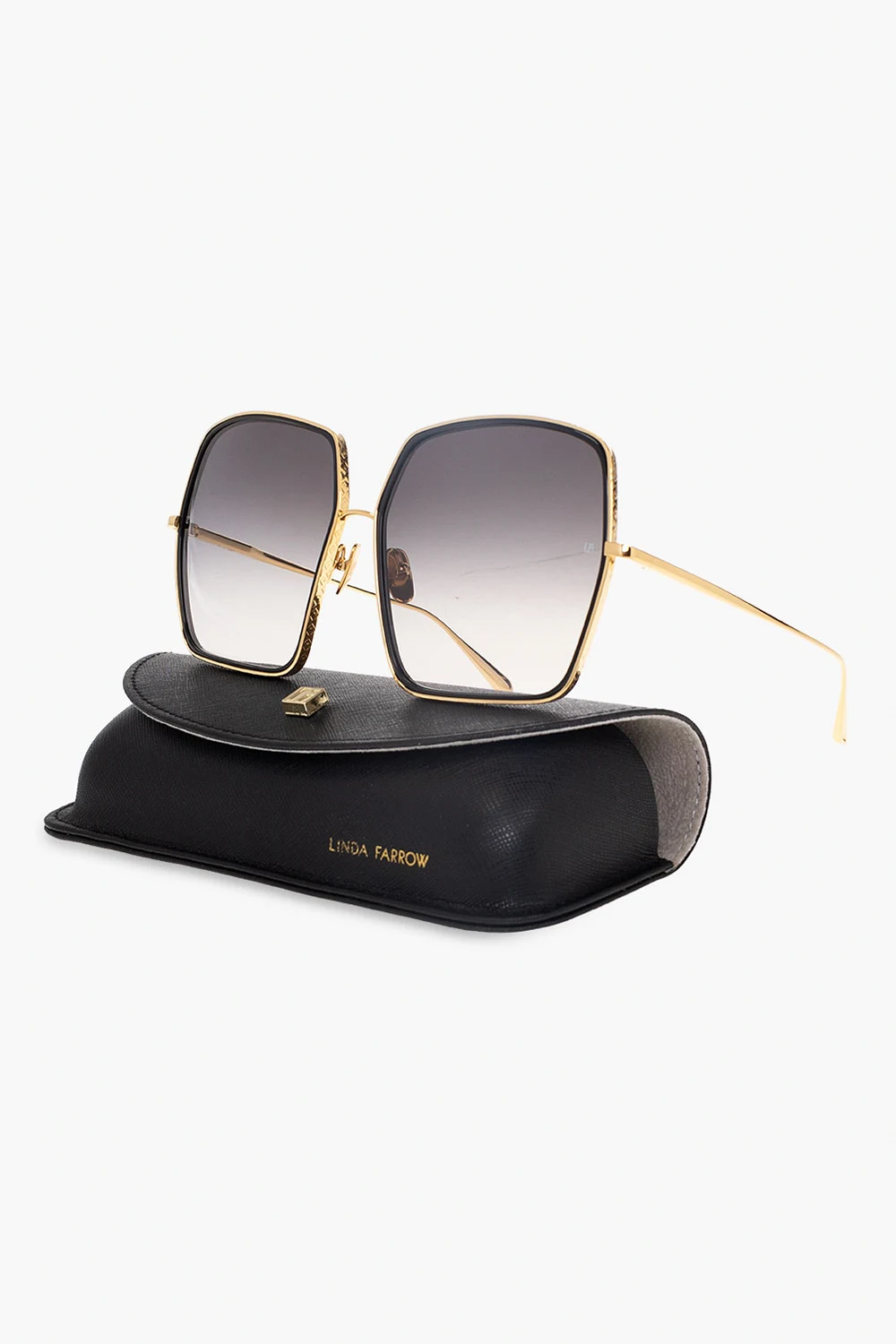 Gold-tone and black ‘Camaro Oversize’ sunglasses from Linda Farrow. Embellished with a decorative pattern, this pair features an engraved logo on the side and grey gradient ZEISS lenses with 100% UV protection.