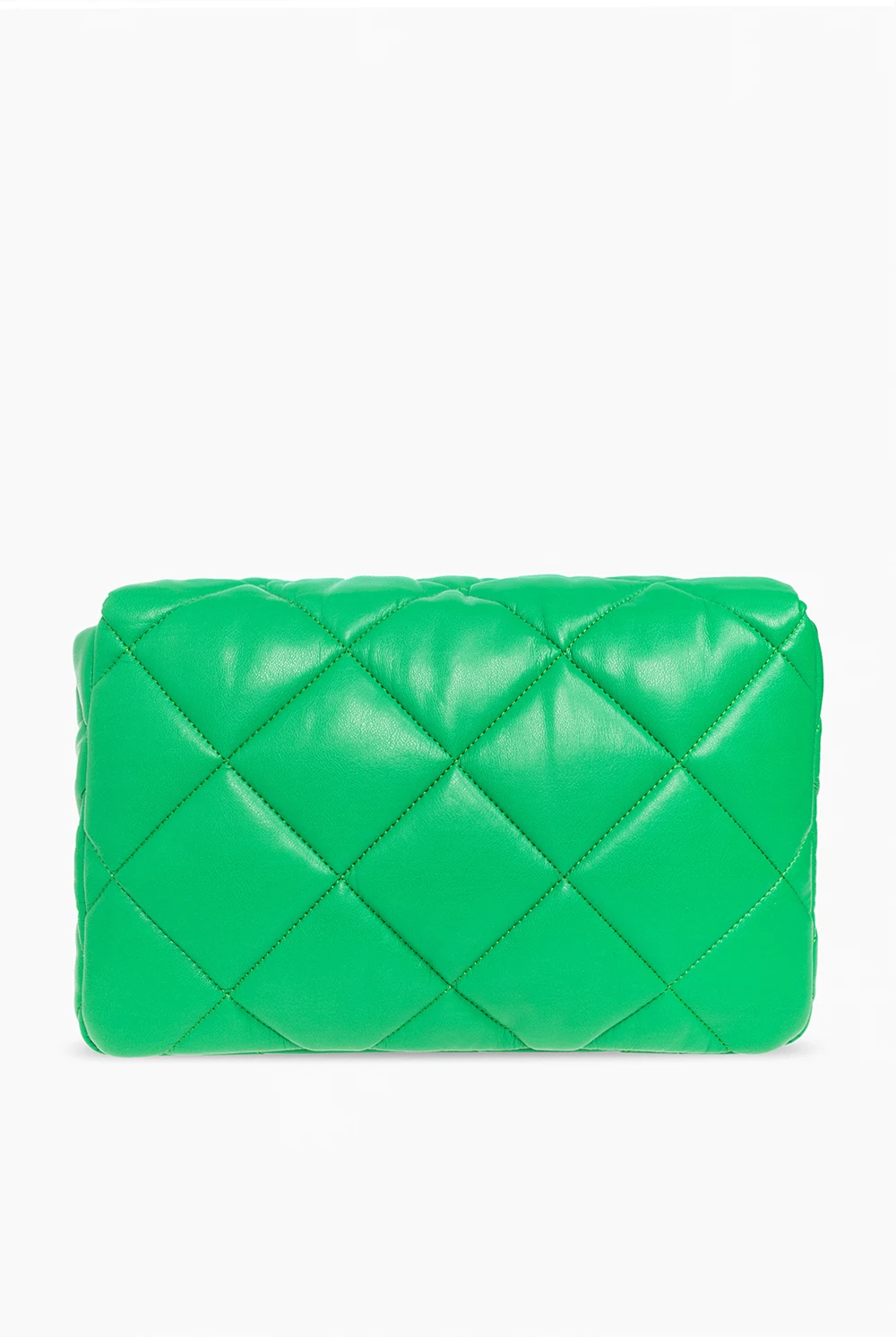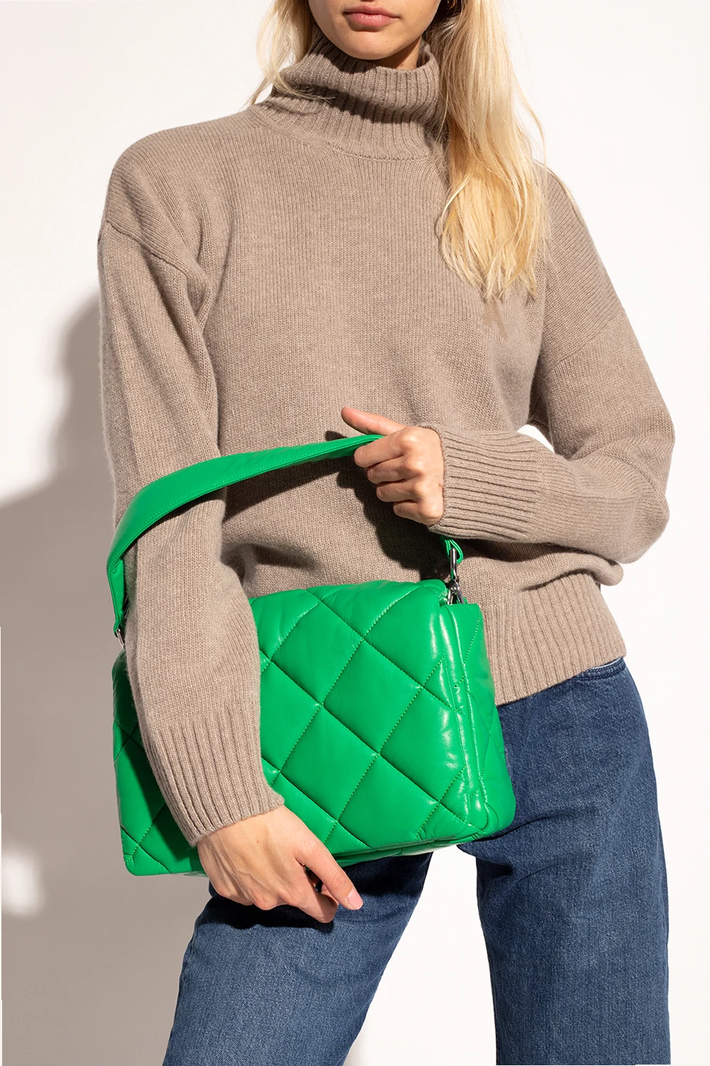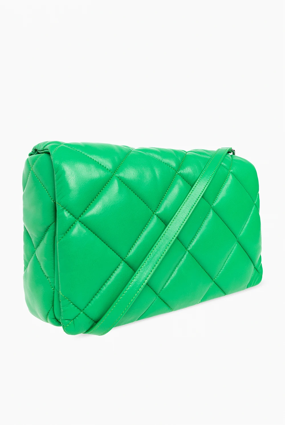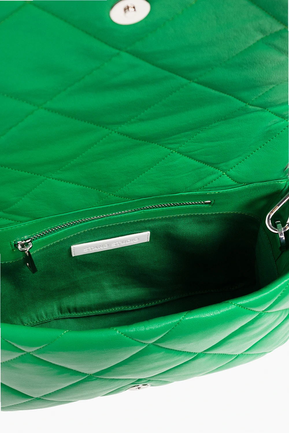 Green ‘Wanda Mini II’ quilted shoulder bag from STAND STUDIO. Made of faux leather, this model features a snap closure, short handle, adjustable shoulder strap, silver-tone metal hardware and one internal compartment with one zip pocket.