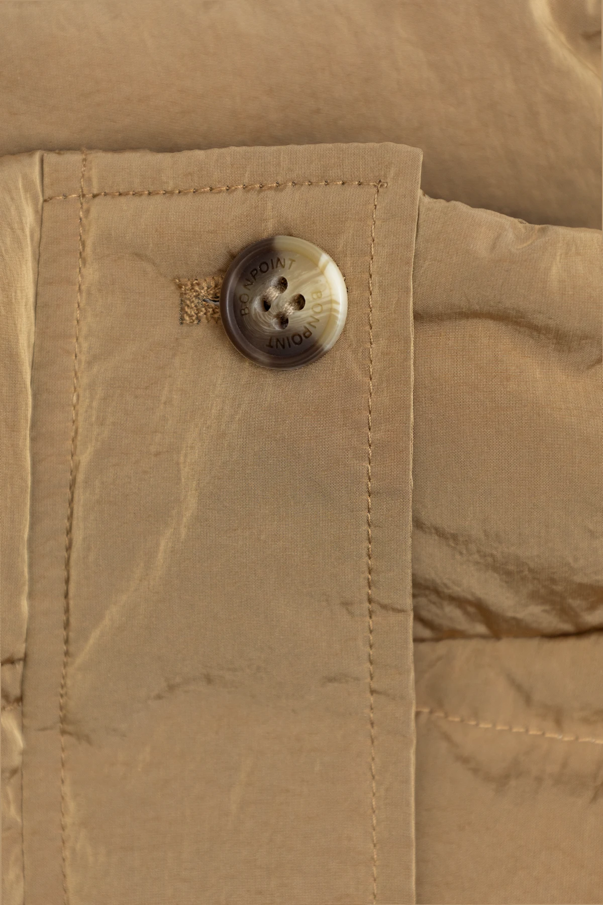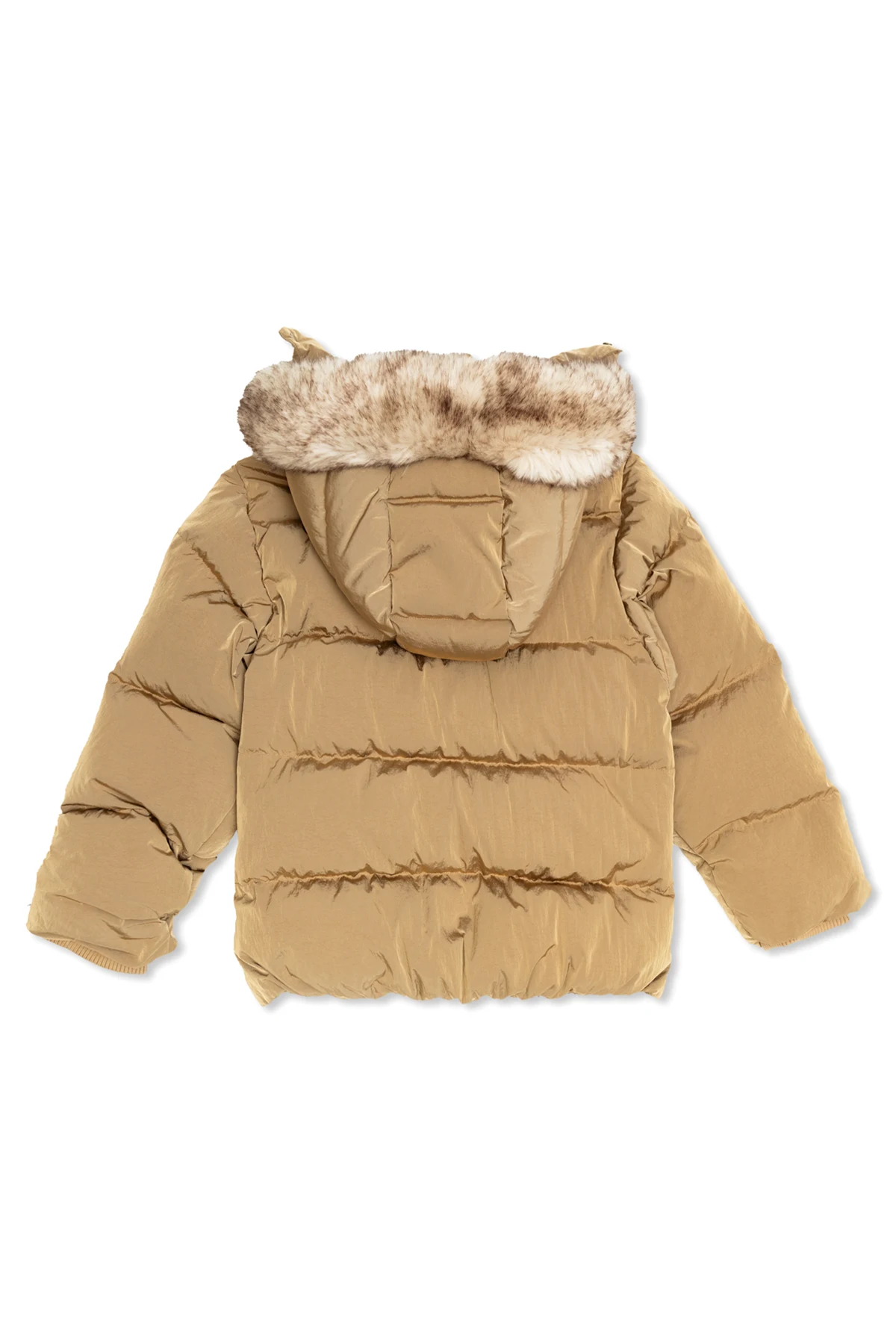 Elevate your child\'s winter wardrobe with the Kurtka z logo from the illustrious French designer Bonpoint. This exquisite jacket, designed for girls aged 4 to 14, showcases the perfect blend of classical elegance and contemporary functionality. Crafted from high-quality polyester in a sophisticated brown hue, this jacket features a timeless, straight-cut silhouette with a quilted pattern, providing not only an elegant look but also extra warmth. The hood, adorned with plush, light fur accented with darker tones, adds a touch of luxury and additional insulation against the chill. The jacket\'s front closure combines buttons and a concealed zipper under a placket, ensuring maximum protection from cold winds. The well-finished buttons, engraved with the brand\'s name, highlight the meticulous attention to detail synonymous with Bonpoint\'s creations. Further enhancing its practicality, the jacket includes elastic cuffs to prevent cold air from entering and two secure pockets with snap closures. The precise stitching and the material\'s refined texture underscore the superior craftsmanship. Why Choose This Product? Timeless design with a quilted pattern for added warmth High-quality polyester material in an elegant brown shade Luxuriously lined hood with plush fur detailing Secure front closure with buttons and a hidden zipper Elastic cuffs for enhanced insulation Two practical pockets with snap closures Renowned Bonpoint craftsmanship and attention to detail
