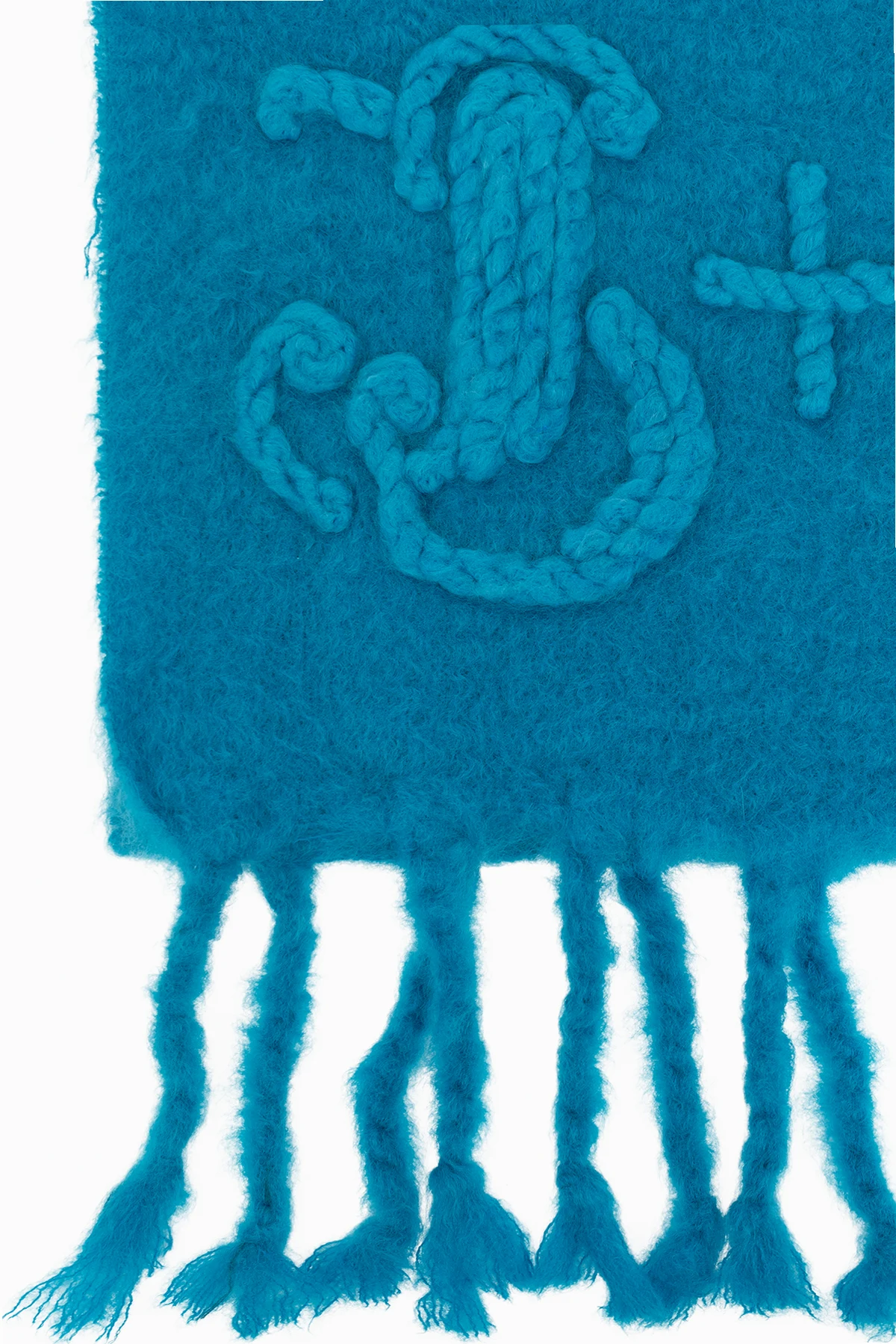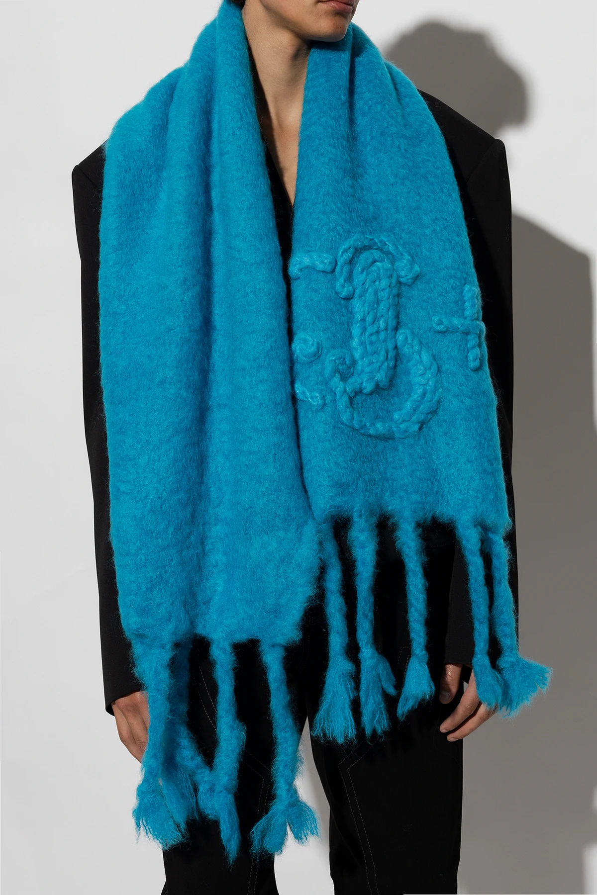 Blue scarf from Jil Sander+. Made from a blend of mohair and wool, this design is enriched by a logo embroidery and braided fringes.