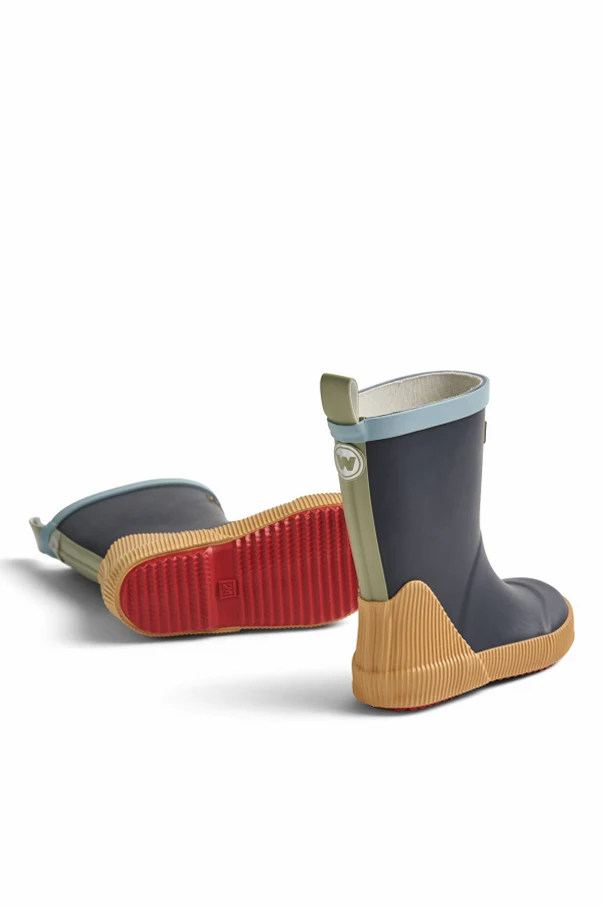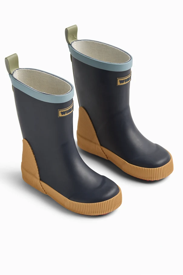 Immerse your child in refined practicality with the Welly rubber boots by Wheat, exquisitely rendered in a deep navy blue hue. This classic mid-calf silhouette features gracefully rounded toes and a wide upper opening, seamlessly blending utility with timeless charm. An understated rear handle ensures effortless wear, offering both independence and comfort for young adventurers.