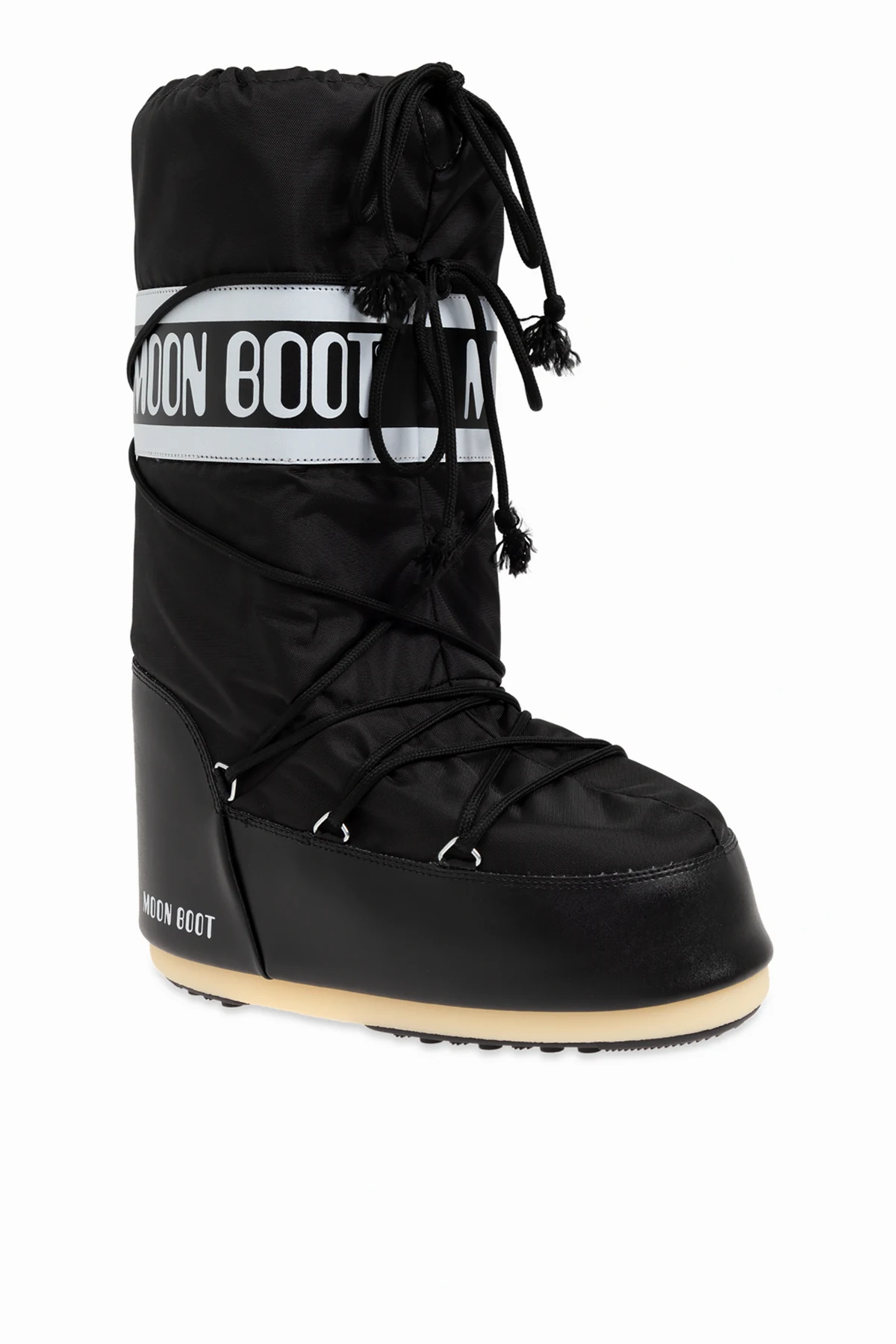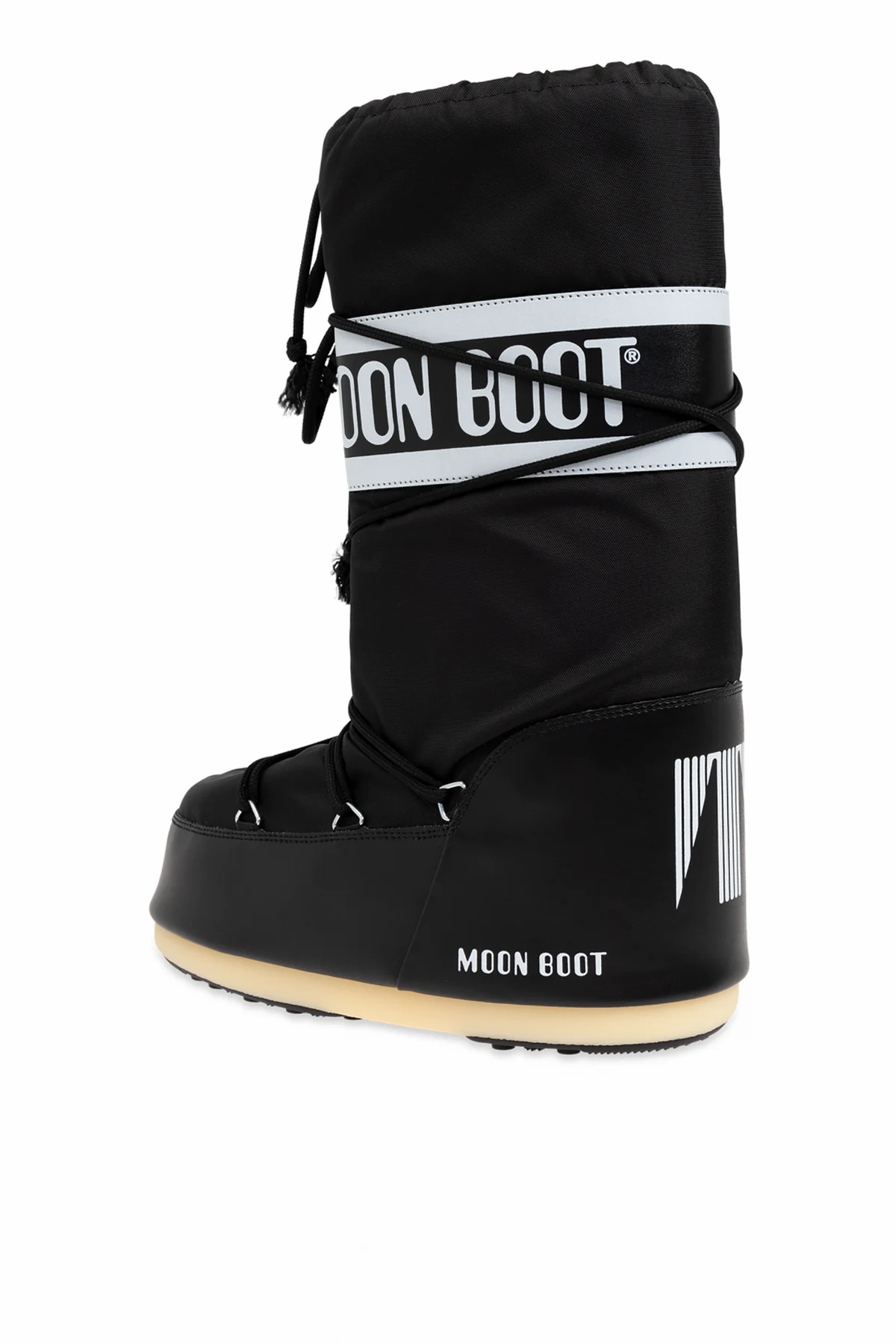 Introducing the Icon Nylon Snow Boots by Moon Boot, a harmonious blend of modernity and functionality meticulously designed for men. These exclusive boots are a paragon of style, ideal for braving the winter elements. Crafted from resilient nylon, these snow boots feature a distinctive high-profile shape that extends above the ankle. The sleek black exterior is adorned with bold white \"MOON BOOT\" lettering on the side panels and a logo on the back, creating a striking contrast. The full-length lacing system ensures optimal stability and comfort, accentuated by decorative tassels at the ends of the laces. The synthetic sole offers exceptional traction on snow and ice, making these boots indispensable for winter adventures. The combination of durable materials and thoughtful design elements underscores the ingenuity of Giancarlo Zanatta, whose vision from the 1970s continues to captivate the fashion-forward individuals of the 21st century. Why Choose This Product? Exclusive design from the Icon Nylon collection. High-profile shape providing superior ankle support. Durable nylon construction, resistant to harsh weather conditions. Bold, easily recognizable Moon Boot branding. Exceptional traction with a synthetic sole designed for snow and ice. Comfort and stability with a full-length lacing system.
