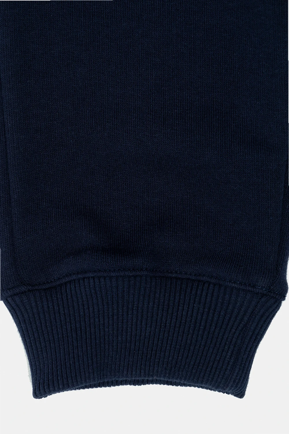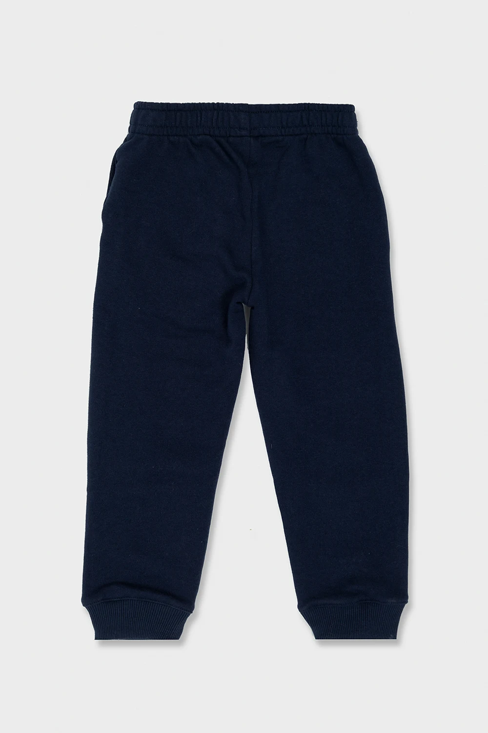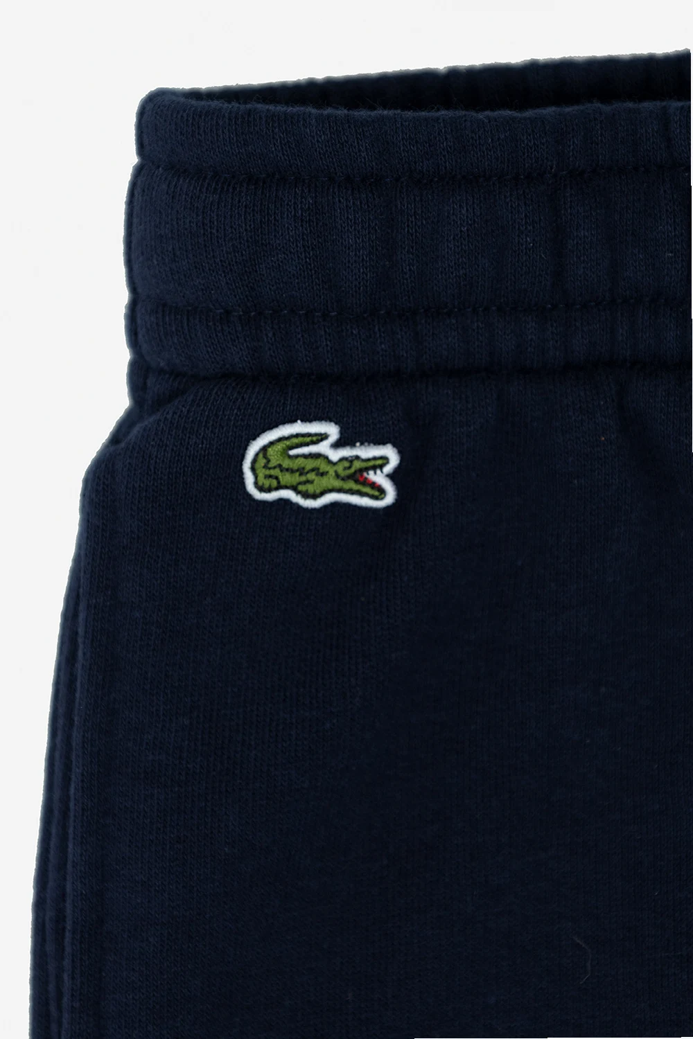 Navy blue sweatpants from Lacoste Kids. Cinched with green drawstrings at the waist, this pair features elasticated cuffs and two slip pockets accompanied by the brand\'s signature colourful logo patch on the front.