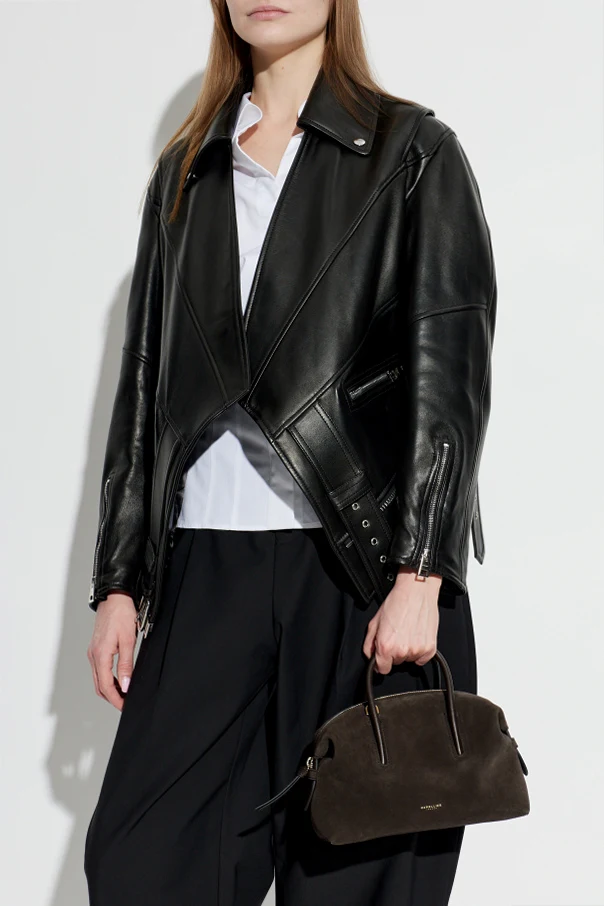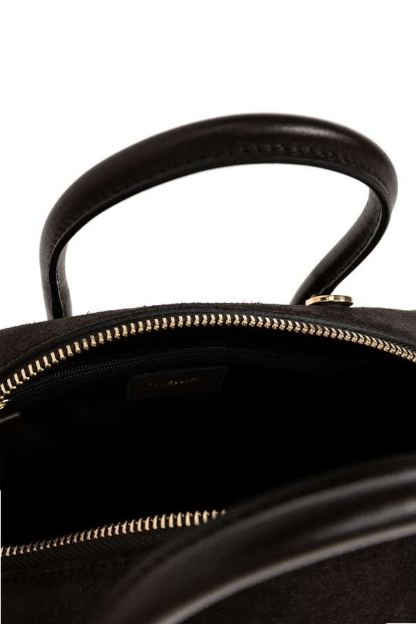 The Small Stockholm shoulder bag by DeMellier is a refined statement of minimalist sophistication. Expertly crafted from sumptuous brown suede , this bowling bag silhouette showcases elegantly rounded lines complemented by two short, curved handles and a detachable, elongated shoulder strap in smooth leather—allowing versatile carriage with uncompromising poise. Its seamless, monochromatic finish and absence of ornamental distractions highlight the sculptural form and extraordinary material quality. The bag is thoughtfully accented by a distinctive gold-tone zipper and a subtle “DEMELLIER LONDON” logo embossed in gold at the base, ensuring authenticity and understated allure. Inside, a meticulously finished fabric lining adds a touch of discrete luxury to every detail. Why choose this product? Exquisite brown suede exterior exudes sophistication and warmth Smooth leather handles and strap enhance luxury appeal Versatile design—carry by hand or over the shoulder Minimalist aesthetic for timeless elegance Authentic gold-stamped logo and gold zipper detail