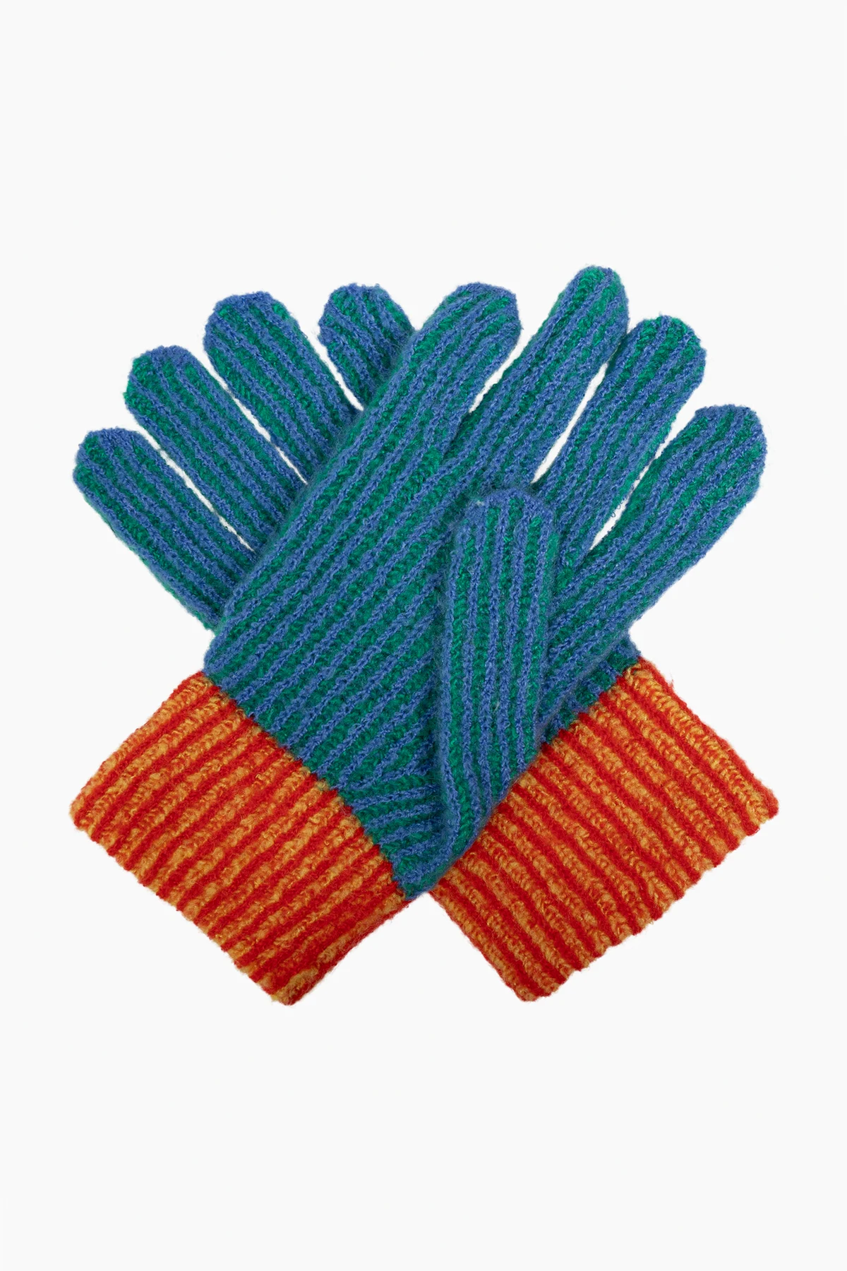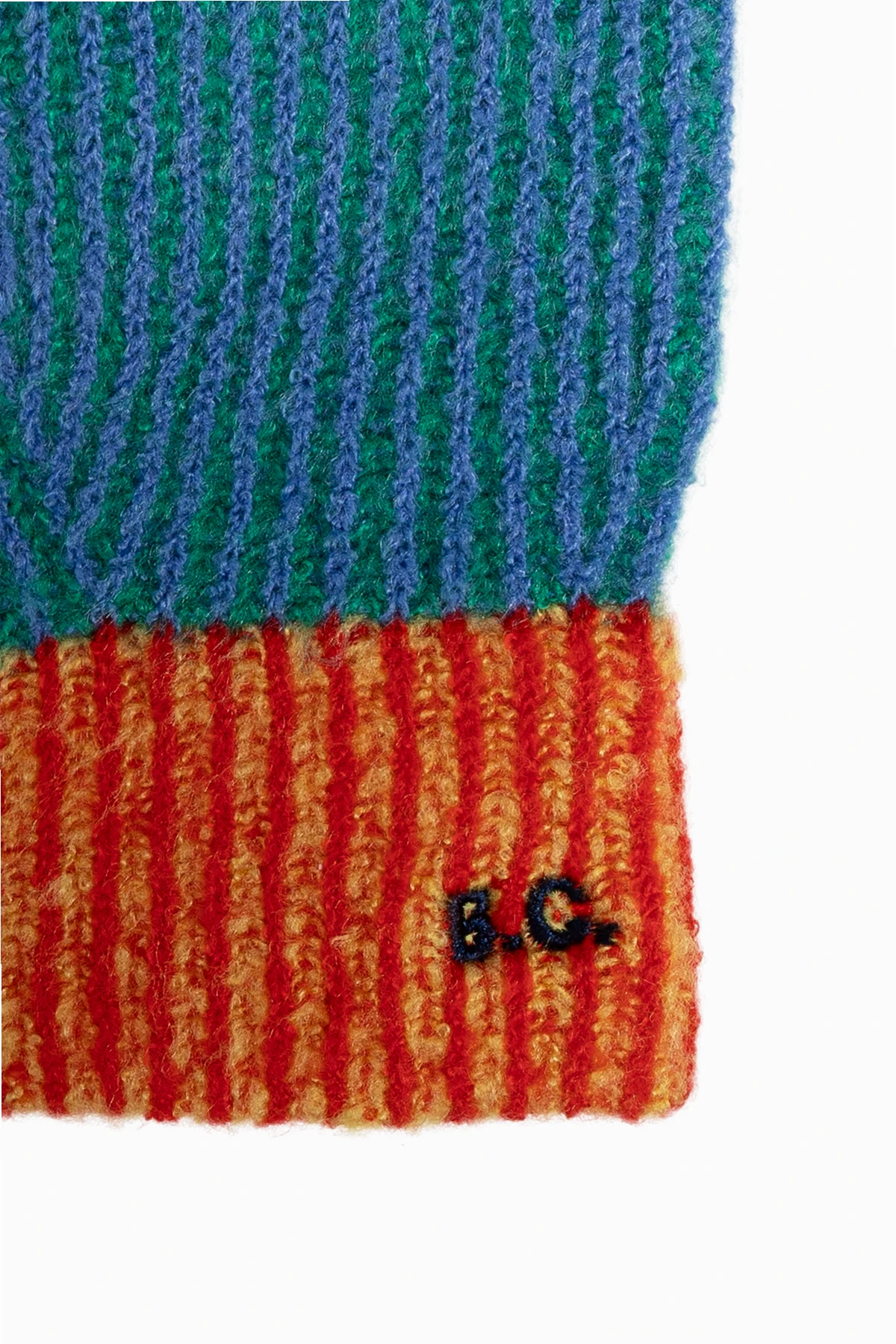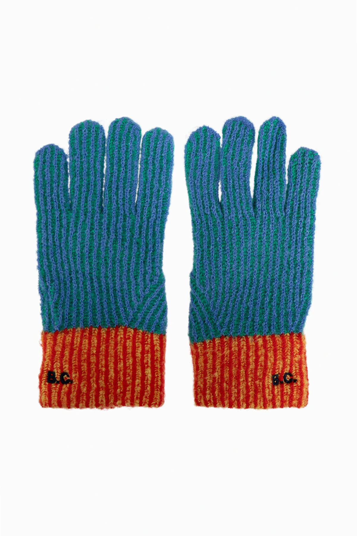 Introducing the exclusive Logo Gloves by the renowned Spanish brand Bobo Choses, a perfect blend of playful design and impeccable craftsmanship. These gloves are meticulously designed for children who appreciate both comfort and style. The gloves feature a classic five-finger shape, rendered in a distinctive ribbed pattern that adds a delightful texture. Crafted from a soft and warm blend of acrylic and polyamide, they promise to keep little hands cozy during the cooler months. Adorned with a subtle black \"B.C.\" logo on the cuff, these gloves are a testament to understated elegance. The vibrant blue hue of the gloves is complemented by contrasting cuffs in orange with yellow stripes, creating a visually appealing and modern look. Perfect for kids who enjoy the finer things in life, these gloves are an ideal accessory for any stylish young wardrobe. Why Choose This Product? Exclusive Design: Created by Bobo Choses, a brand celebrated for its imaginative and eco-conscious designs. Premium Materials: Made from a luxurious blend of acrylic and polyamide for superior warmth and comfort. Distinctive Style: Features a ribbed pattern and a sophisticated color palette with contrasting cuffs. Subtle Branding: Elegant \"B.C.\" logo on the cuffs adds a touch of refinement.