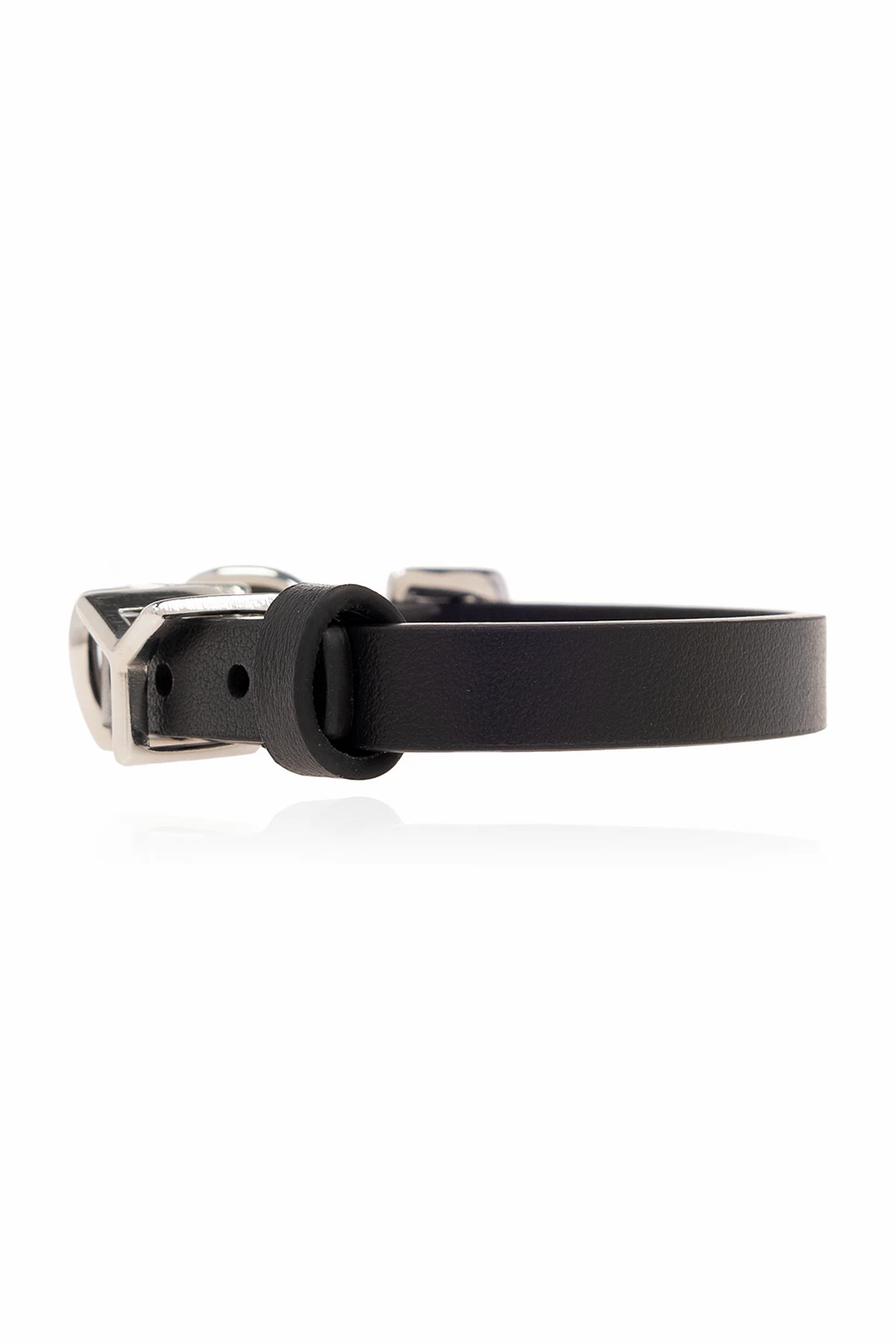 Black bracelet from Y Project. Made of calf leather, this item features an adjustable buckle fastening accentuated with silver-tone logo applications.