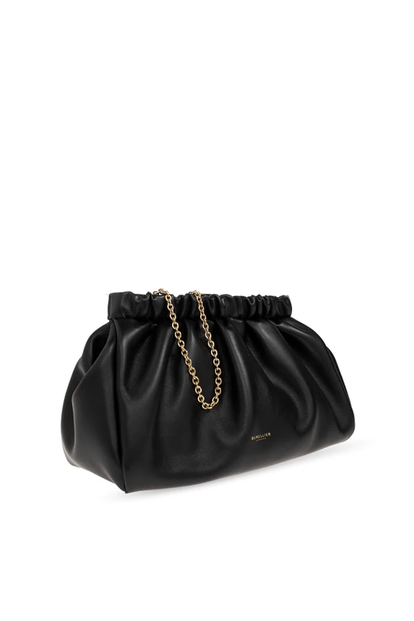 The Miami Shoulder Bag by DeMellier exudes refined sophistication, capturing the spirit of contemporary luxury. Immaculately crafted from smooth, matte genuine leather in a strikingly Black hue, its wide, softly structured silhouette echoes the elegance of an oversized, gathered clutch. The artful pleats create a sumptuous texture, while the generous, drawstring-inspired upper infuses the shape with modern allure. The interior, lined with pristine cotton, ensures every belonging stays elegantly organized. A distinctive gold-tone chain strap glimmers with understated opulence, complemented by the tastefully embossed gold logo—“DEMELLIER LONDON”—across the lower front. Unpatterned and quietly bold, this bag is the embodiment of sophisticated minimalism. Why choose this product? Premium matte leather and cotton lining for lasting quality Iconic gathered design for contemporary elegance Exclusive gold hardware and discreet designer branding Perfectly balances statement style and timeless versatility