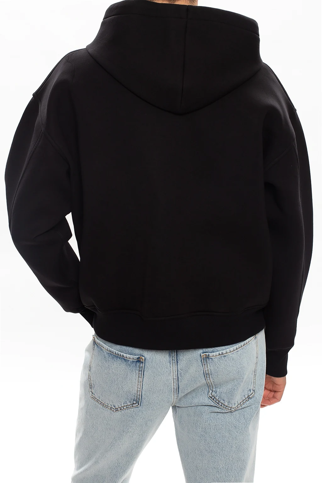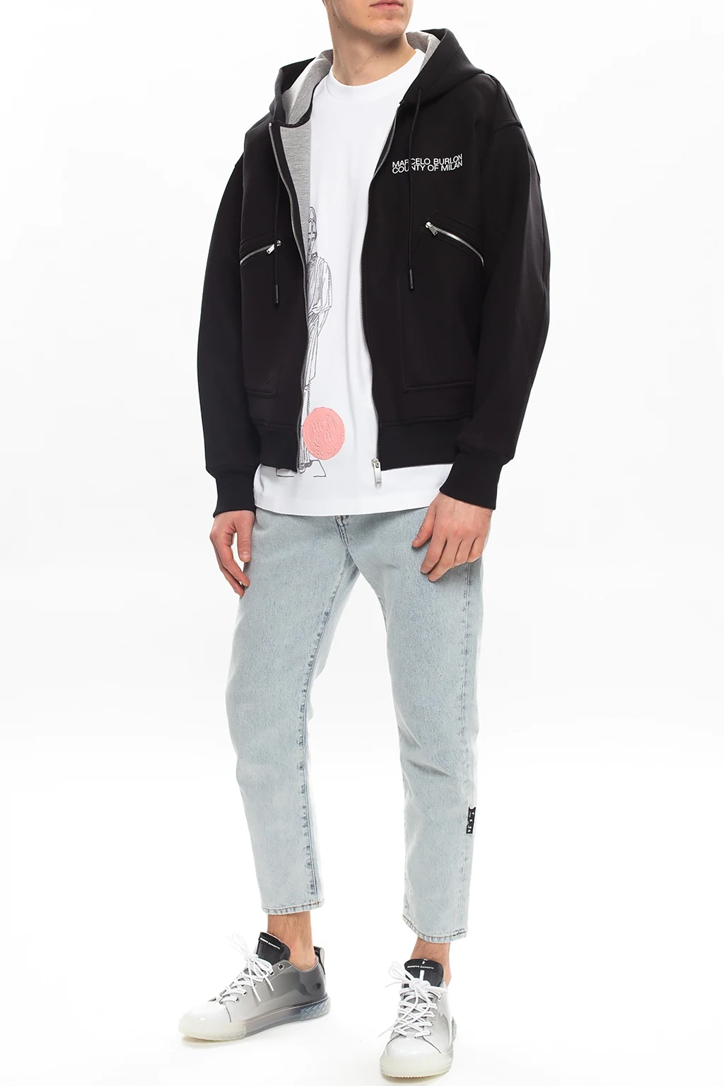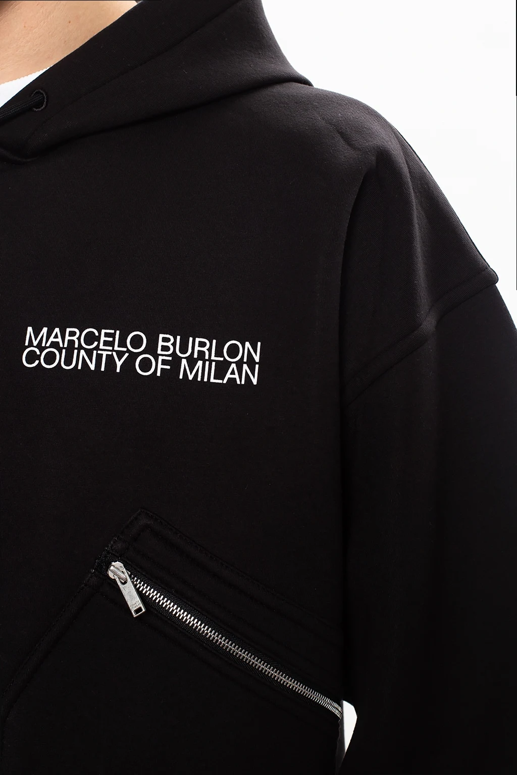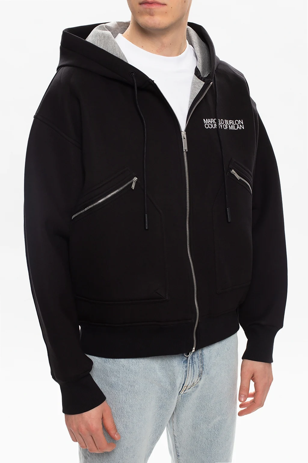 Black sweatshirt with a drawcord-adjustable hood from Marcelo Burlon. Printed with the designer\'s logo, this hoodie fastens via a zip and employs two zipped pockets and a ribbed bottom hem and cuffs.