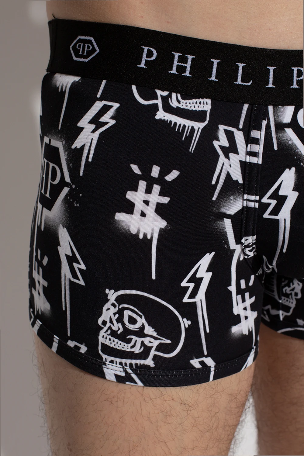 Black and white boxers from Philipp Plein. Crafted from a stretch-cotton blend, they feature a graphic print with an accompanying logo.