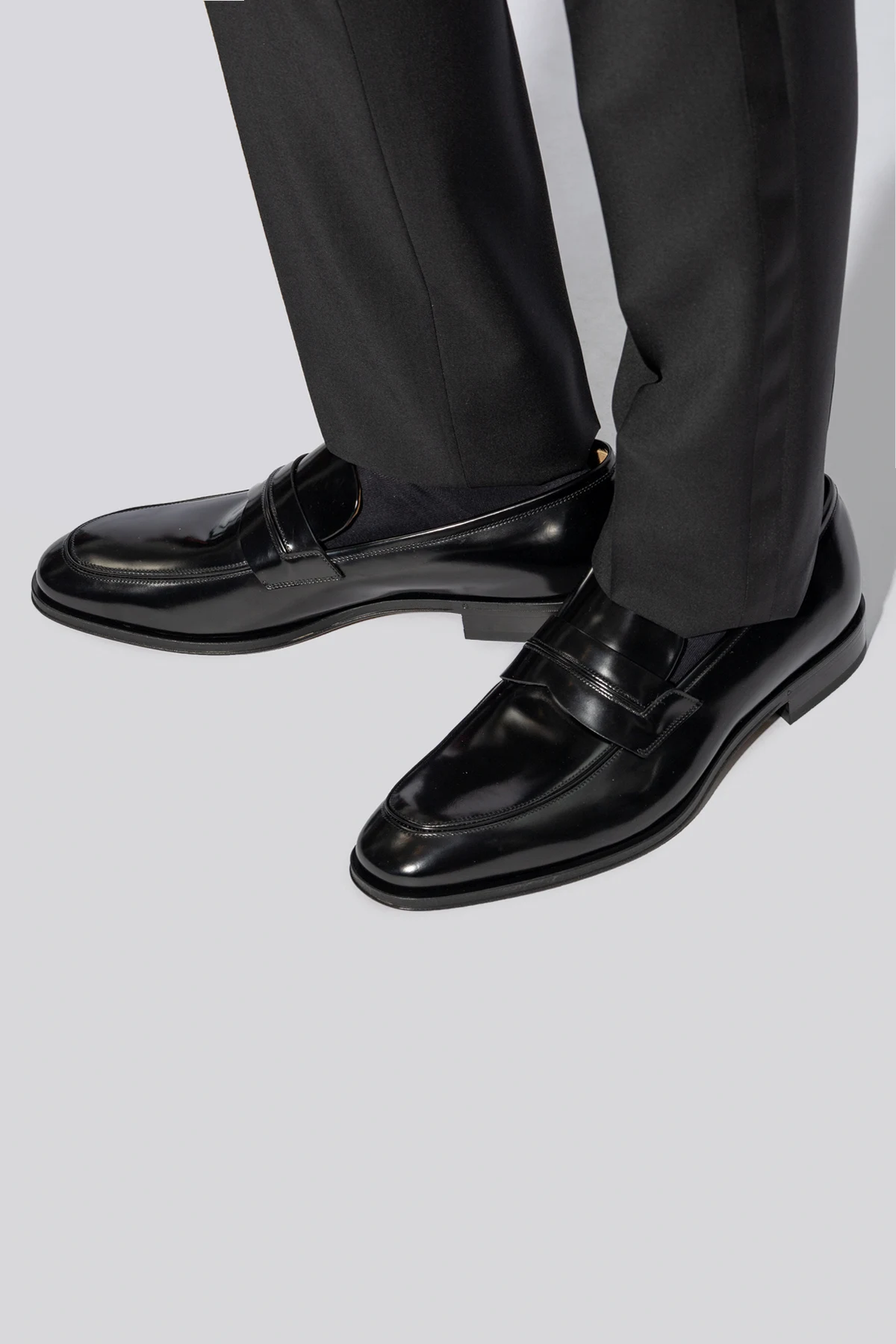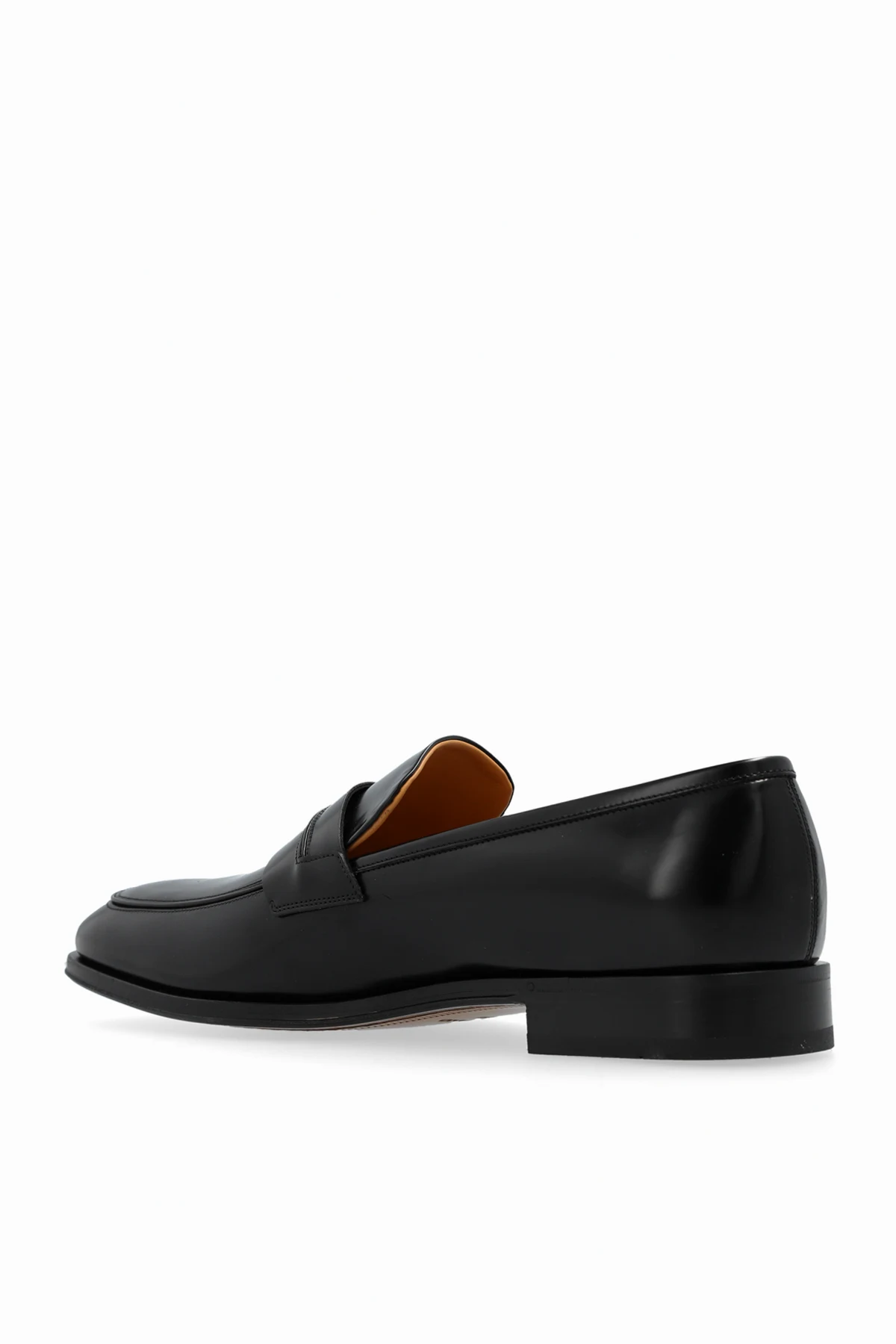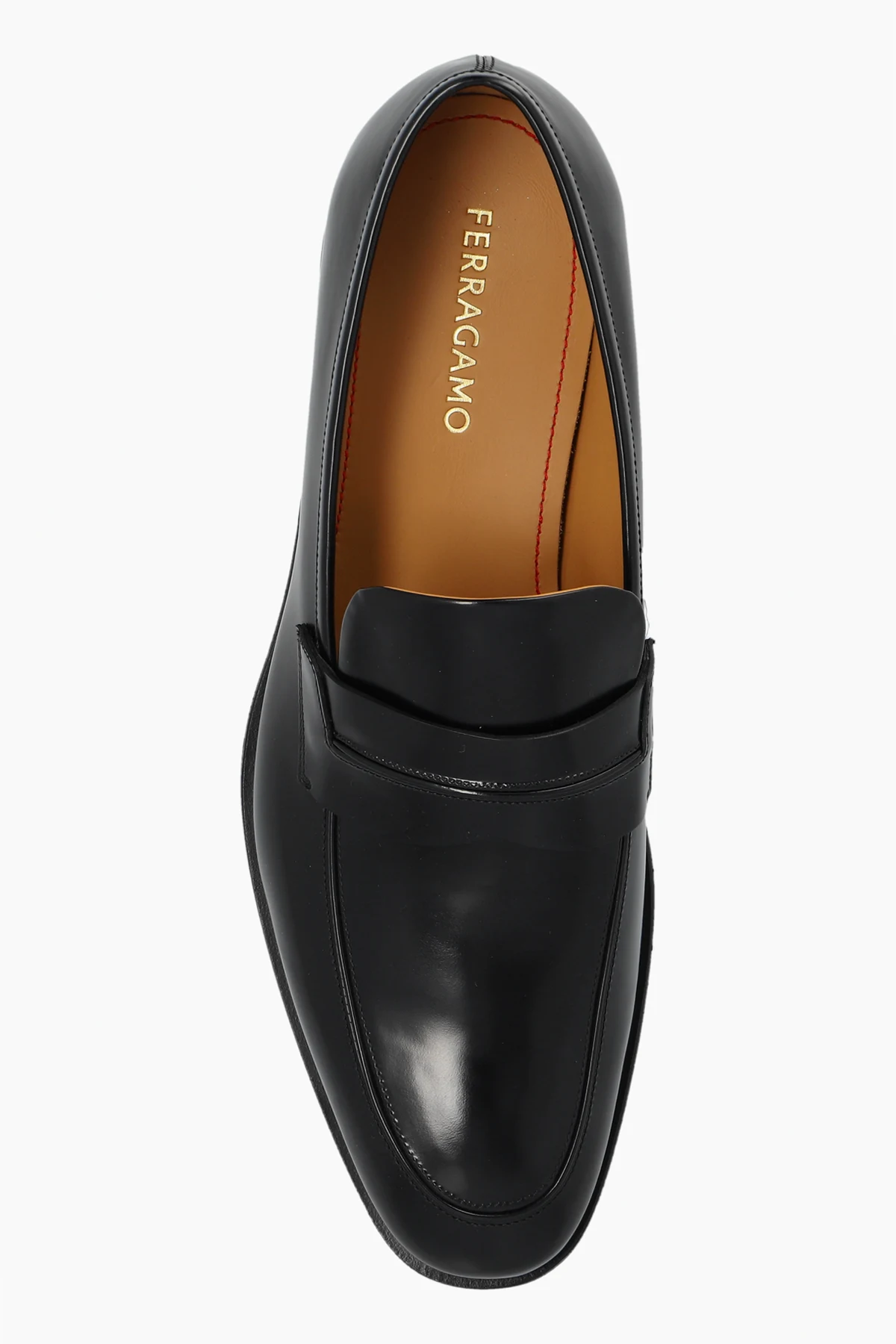 Introducing the \'Felipe\' leather moccasins, a quintessence of elegance and refinement from the esteemed house of FERRAGAMO. Crafted with meticulous attention to detail, these black moccasins are a testament to timeless style and luxury. The high-shine, possibly lacquered or polished leather, mirrors sophistication, while the classic rounded shape and low-cut design signify the traditional essence of moccasins. The signature penny strap adorns the upper, adding a distinctive flair that sets these shoes apart. Coupled with a durable sole, likely crafted from premium leather or rubber, these moccasins are designed for both, resilience and formal elegance. The interior boasts a contrasting, lighter shade of leather, enhancing the exclusivity and providing a subtle touch of luxury. Notably, this exquisite pair features an extra-wide insole, ensuring unparalleled comfort without compromising on style. The internal label bearing the FERRAGAMO name underscores the authenticity and high standards of craftsmanship expected from such a renowned designer. Why Purchase the \'Felipe\' Leather Moccasins? Timeless elegance with a high-shine, polished exterior Exquisite craftsmanship from the distinguished FERRAGAMO Distinctive penny strap detail for an elevated style Durable and formal-appropriate sole Extra-wide insole for superior comfort Interior contrast enhancing the shoe\'s exclusivity