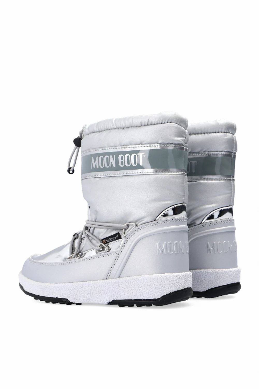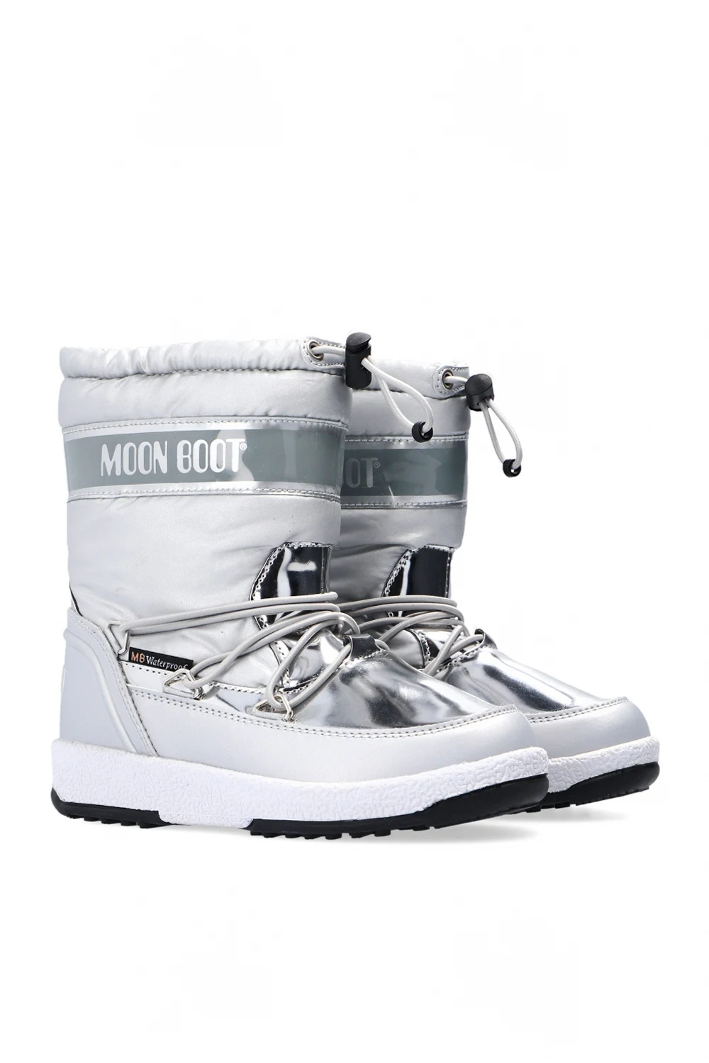 Silver-tone ‘JR Girl Soft WP’ snow boots from Moon Boot Kids. Designed with a waterproof upper, this pair sits on a black rubber sole and showcases cinching drawcord closure a patch and an embossed grey and silver-tone logo for the brand recognition.