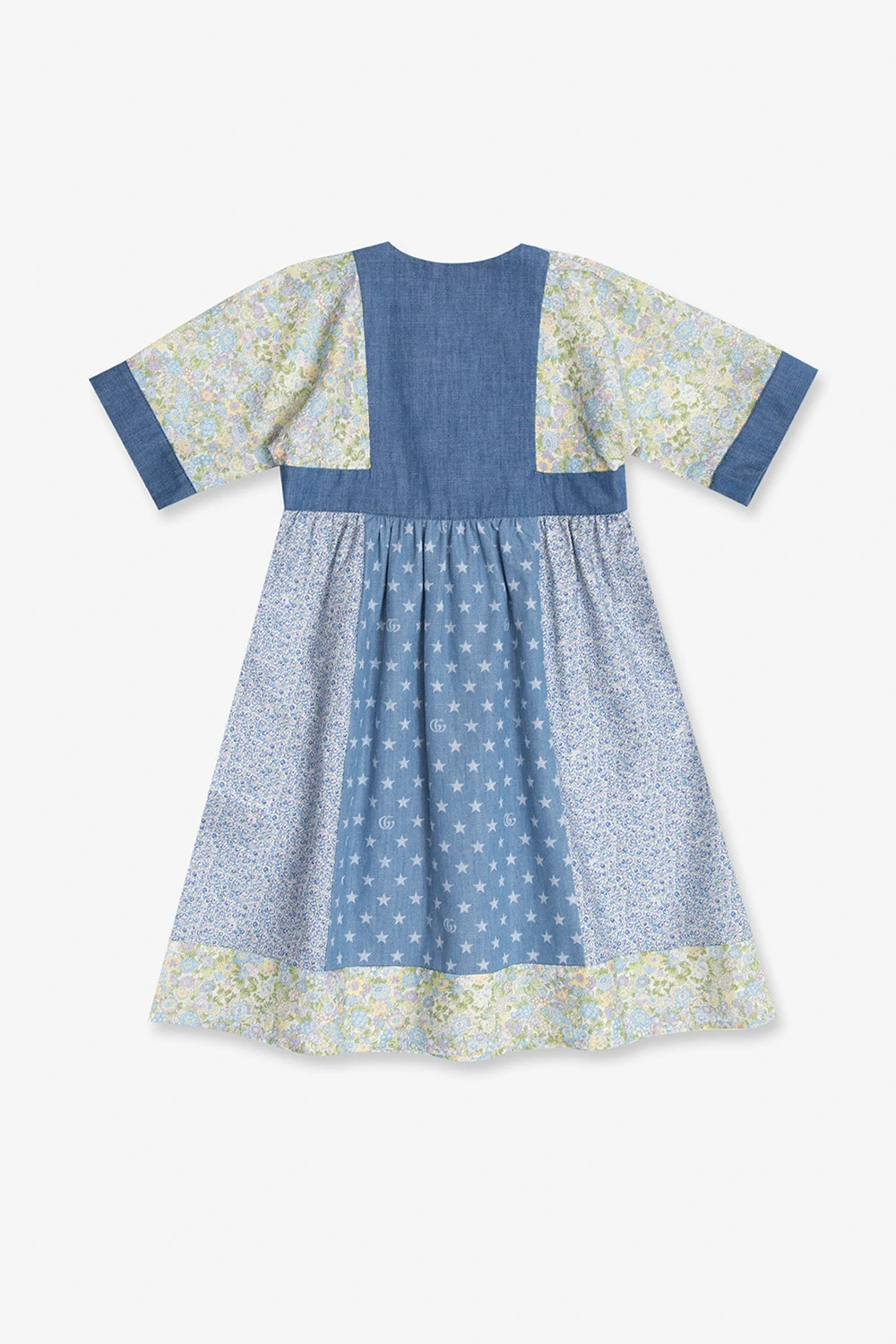 Multicolored dress from Gucci Kids. Made of cotton, this round neck design features button fastenings, short sleeves as well as a floral, star and monogram pattern.