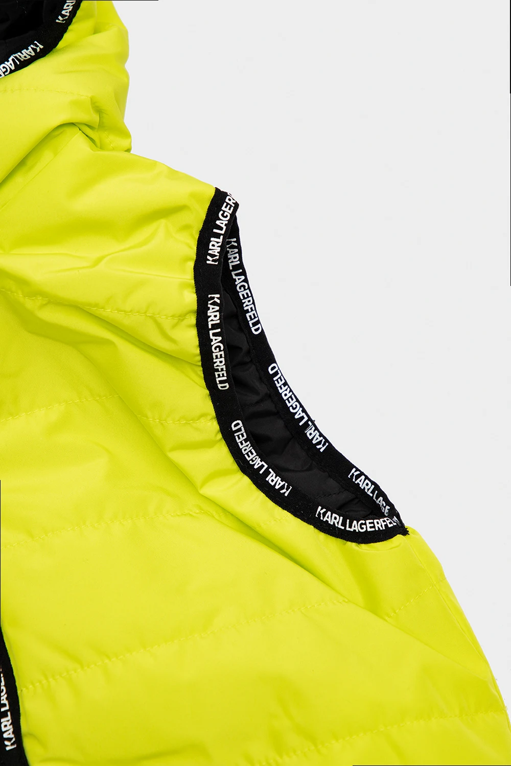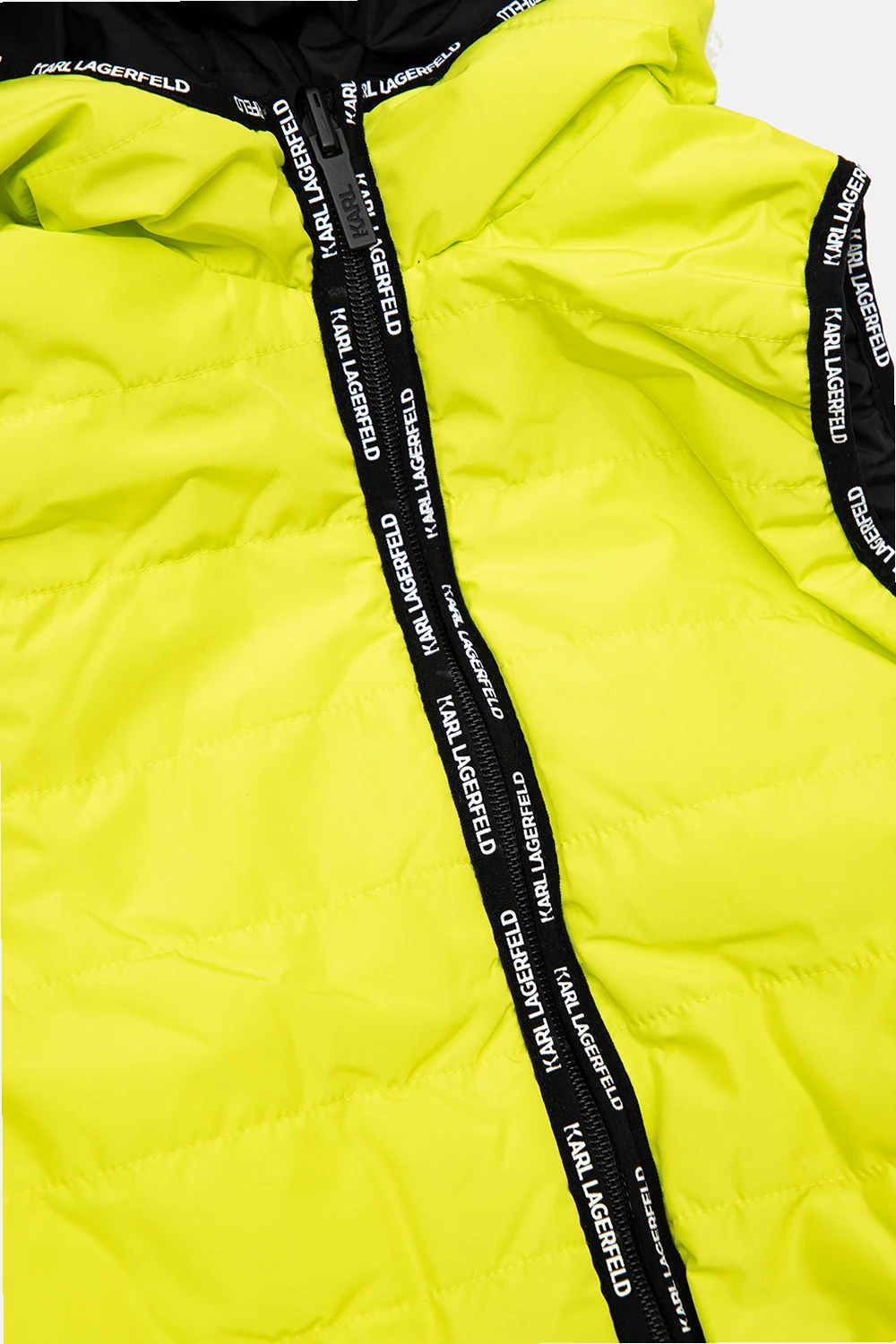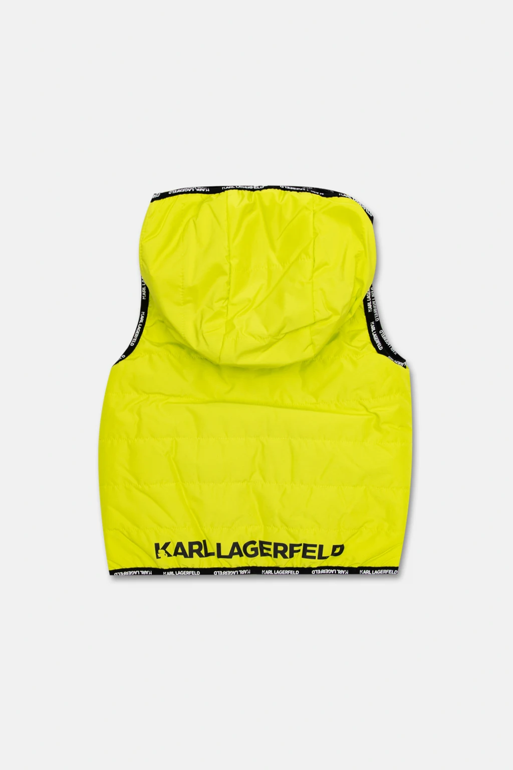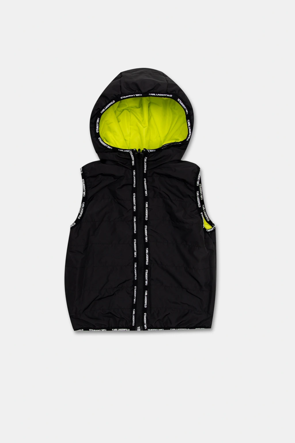 Reversible vest in green and black from Karl Lagerfeld Kids. Embellished with a logo pattern, this style features a zip fastening and a hood.