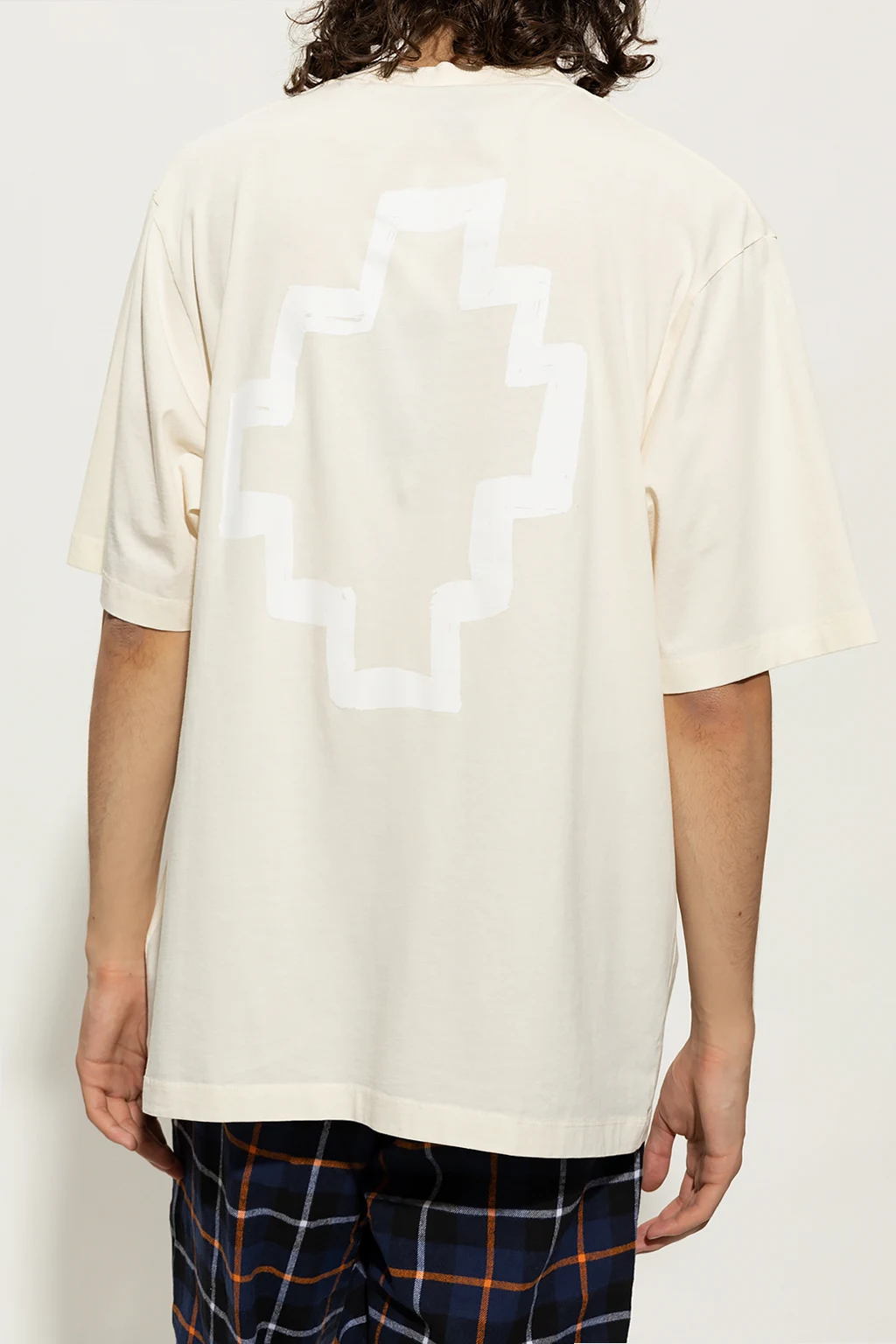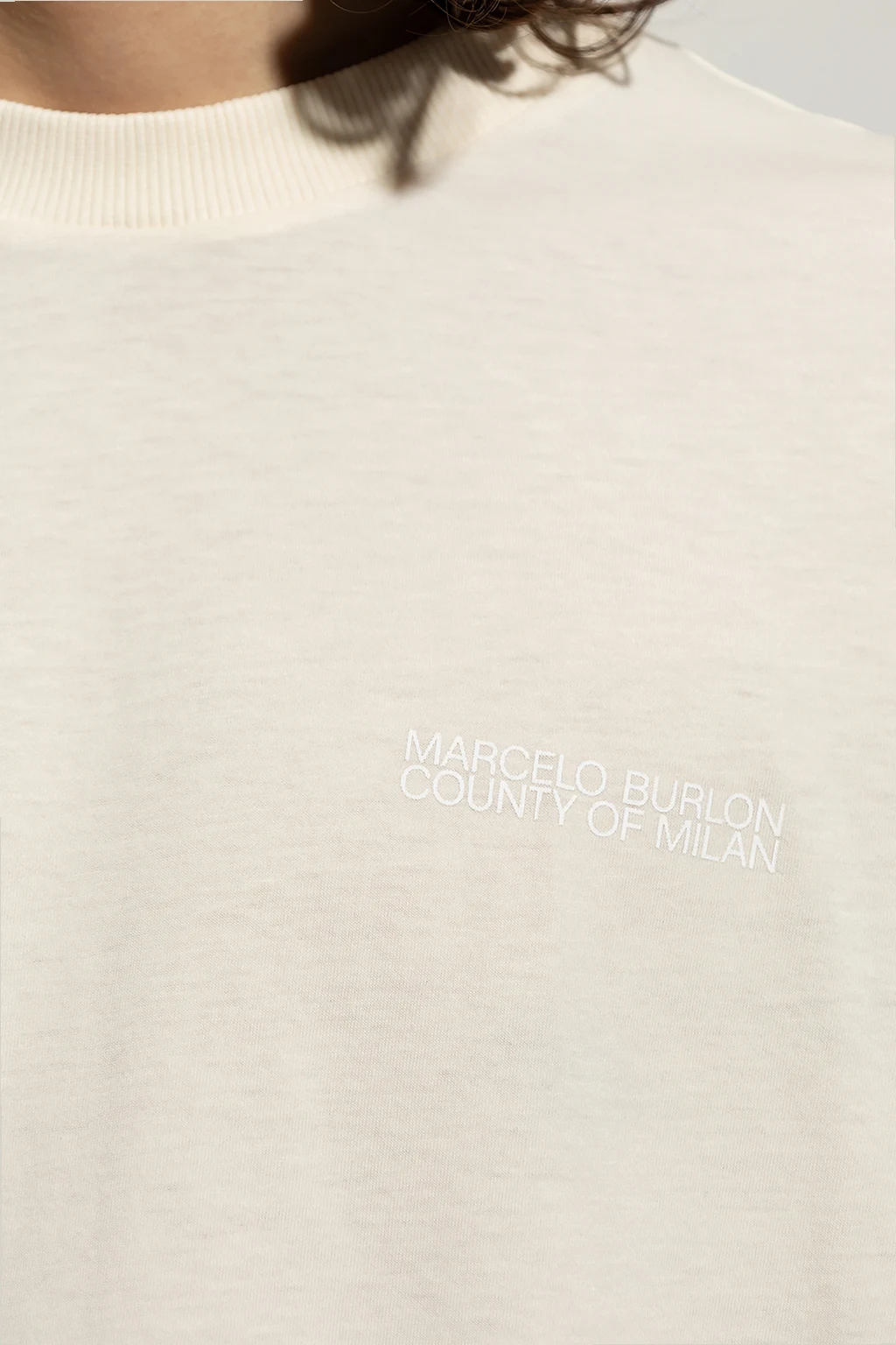 Cream crewneck T-shirt from Marcelo Burlon. Made of cotton, this short sleeve design features a white logo print.