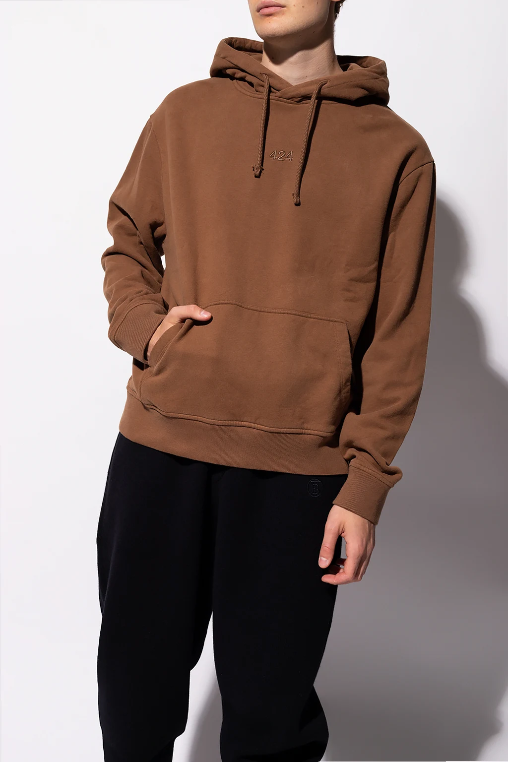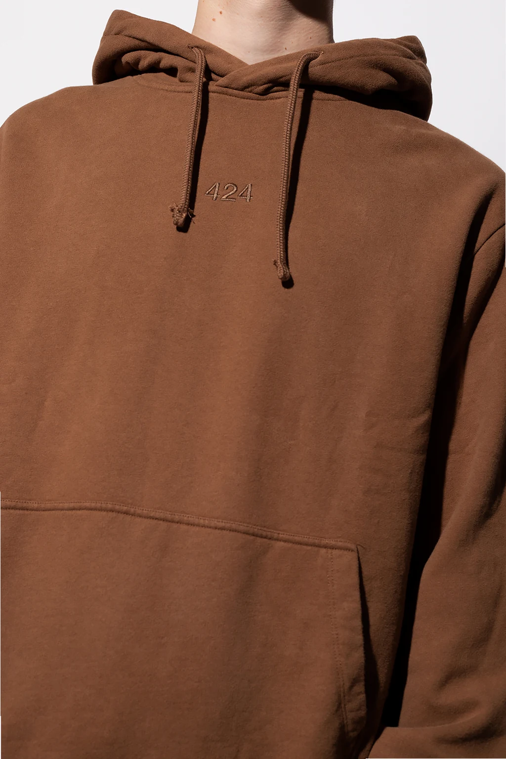 Brown hoodie from 424. Crafted from cotton, this garment features a drawstring hood, brown logo embroidery, two front slip pockets and ribbed trims.