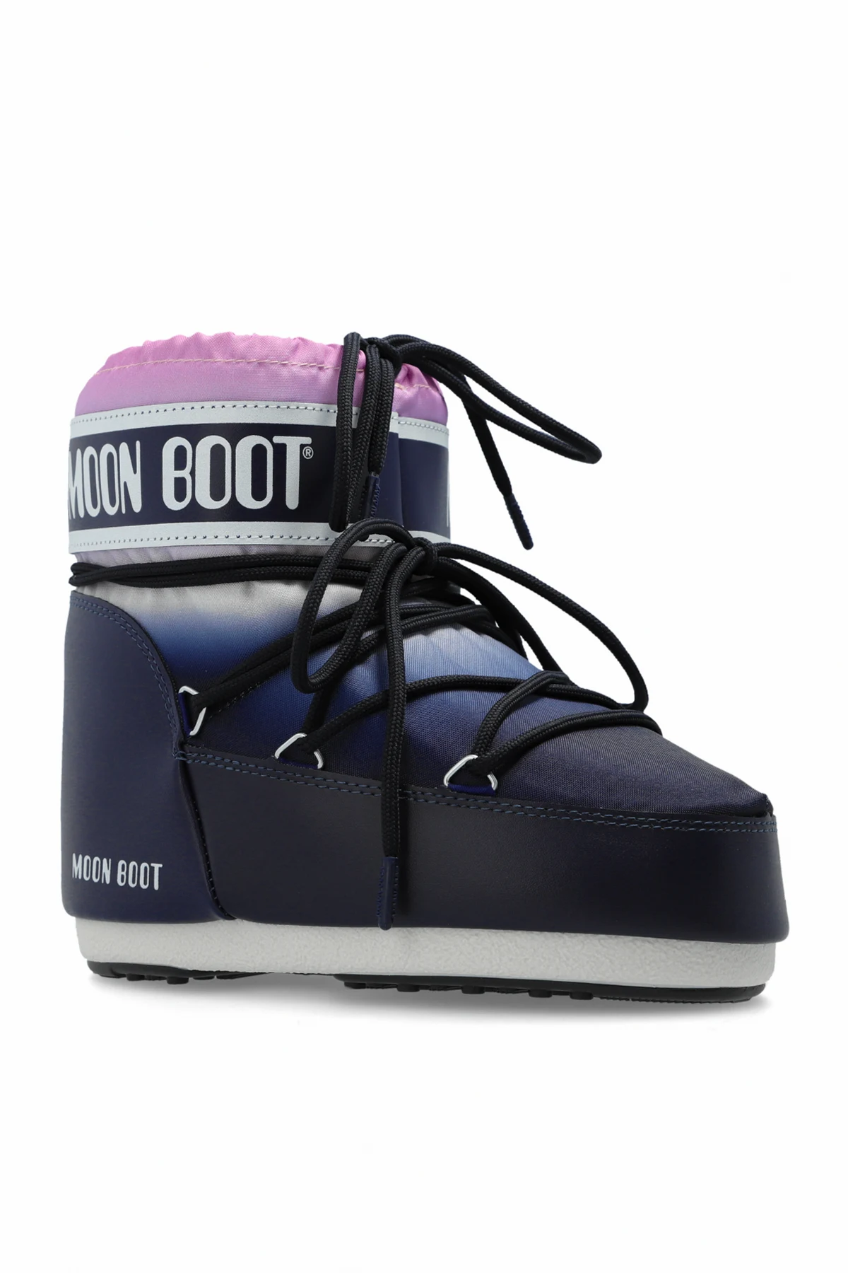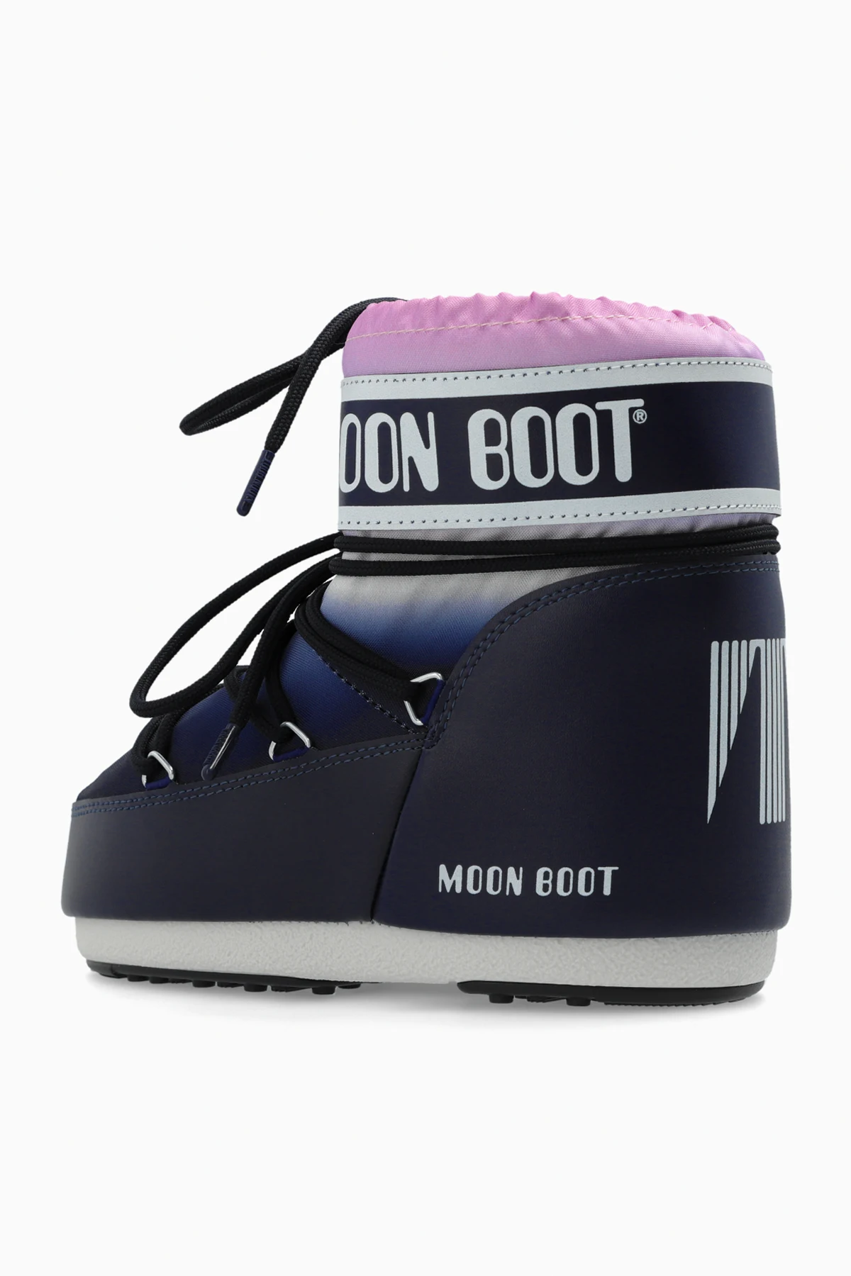 Introducing the Icon Low Moonrise Snow Boots for women, an epitome of winter elegance and practicality. These exquisite boots combine a sophisticated navy hue with a gradient transition to lighter shades, accentuated by a charming pink upper finish. Created by the renowned brand Moon Boot, these boots are a testament to superior craftsmanship and timeless style. The exterior is meticulously fashioned from durable, weather-resistant synthetic material, ensuring these boots withstand the harshest winter conditions. Inside, a plush, insulating lining offers unparalleled warmth and comfort, making them ideal for the coldest of days. The rounded toe design provides ample space, enhancing overall comfort. Adorning the upper part is the iconic “MOON BOOT” inscription in white on a black band, a signature hallmark of the brand. The robust lacing system, threaded through metal eyelets, ensures a secure and adjustable fit. Additionally, the thick, anti-slip soles provide exceptional traction on snow and ice, elevating safety and stability. Why Choose This Product? Elegant design with a stylish gradient color scheme. Durable, weather-resistant exterior for winter protection. Plush, insulating interior for superior warmth and comfort. Secure lace-up system with metal eyelets for a customized fit. Thick, anti-slip soles for enhanced safety on icy surfaces. Authentic Moon Boot branding for a touch of luxury.