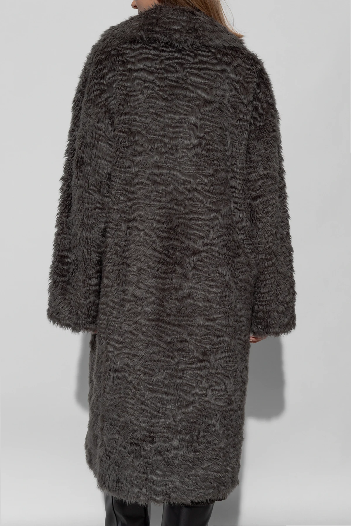 Introducing the Nicole Faux Fur Coat from the esteemed STAND STUDIO, a masterpiece of sartorial elegance and sustainable design. Crafted with meticulous attention to detail, this coat embodies the epitome of luxury and sophistication. The coat boasts a classic, long silhouette with a relaxed fit, ensuring supreme comfort. Made from plush, faux fur, it offers a rich, dense texture that is both soft to the touch and exudes warmth—perfect for cooler days. The dark gray hue imparts an air of timeless elegance, making it a versatile addition to any wardrobe. The wide collar adds an extra layer of chic sophistication, while the concealed snap closures allow for a seamless, polished appearance. Designed by Nellie Kamras, a visionary rooted in Scandinavian minimalism, this coat reflects her ethos of understated yet daring outerwear. Why Choose This Product? Luxurious faux fur texture for unparalleled comfort and warmth. Classic design with a contemporary twist, ideal for formal and casual occasions. Concealed snap closures for a sleek, uninterrupted silhouette. Features two practical pockets for added convenience.