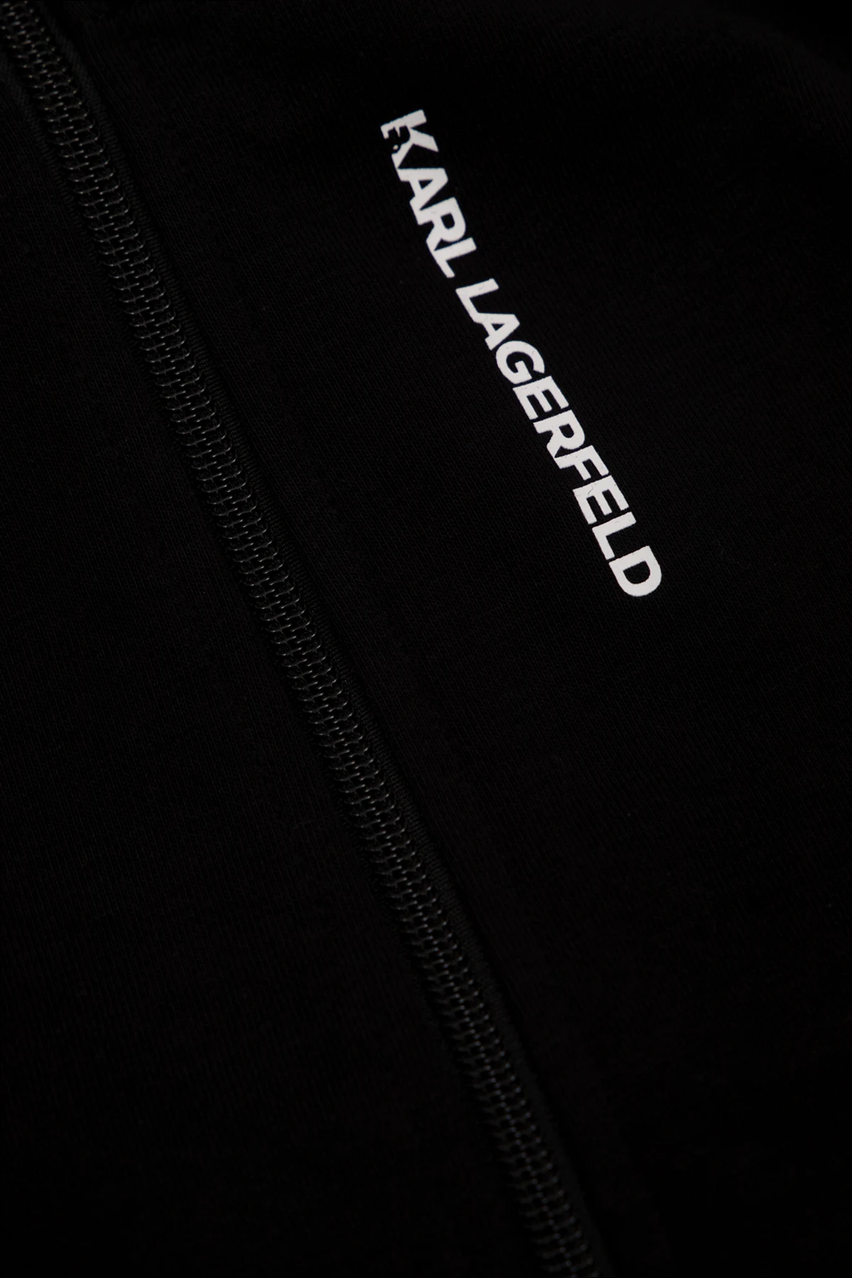 Black hoodie from Karl Lagerfeld Kids. Made of cotton, this garment features a logo print, zip fastening, two slip pockets and ribbed trims at the hem and cuffs.