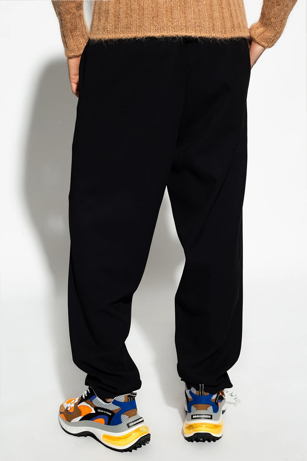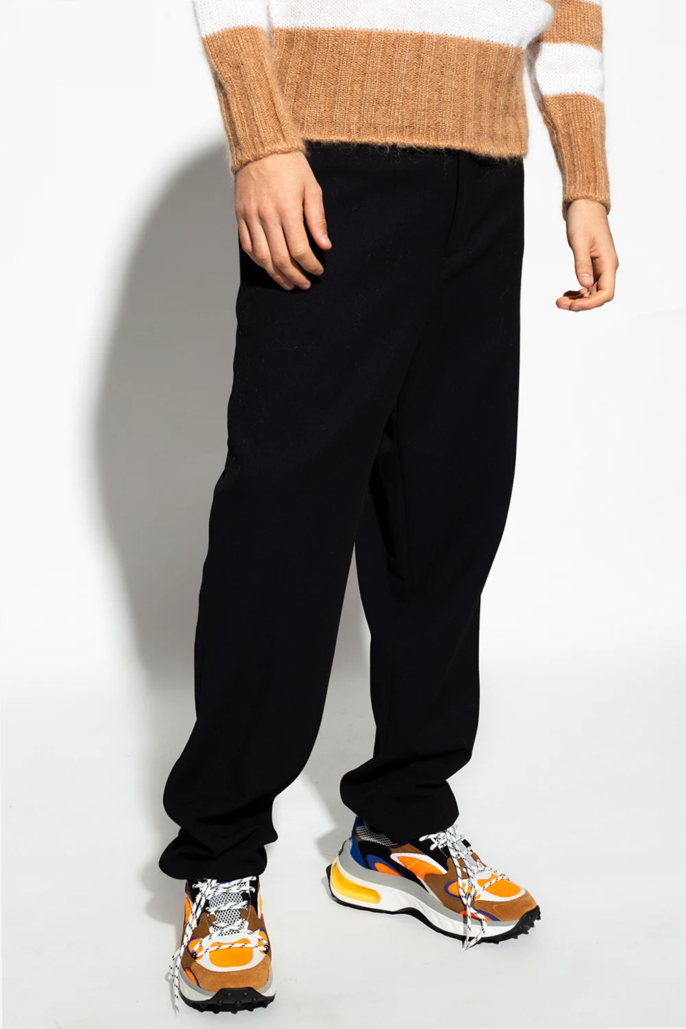Black pleat-front trousers from Ambush. Fastened with a zip, hook and button, this pair is complete with two front and two back pockets.