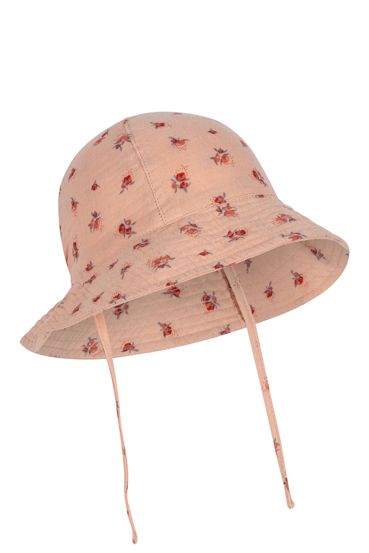 Introducing the exquisite \'Coco\' Floral Hat by Konges Sløjd, a testament to understated elegance and refined taste. Crafted from 100% organic cotton, this summer essential promises not only an ethereal touch to your ensemble but also a commitment to sustainable fashion. The dominant pastel pink hue serves as a canvas to the delicate scatter of red and blue flowers, encapsulating a gentle, feminine spirit. The \'Coco\' hat boasts a classic round shape with a generously wide brim, ensuring ample protection from the summer sun while maintaining a stylish silhouette. Its lightweight and airy fabric, likely a loosely woven textile, offers unparalleled comfort and breathability during warmer seasons. Subtle stitching along the lower edge adds a touch of texture and refinement, while the thin pink ribbons at the back provide a secure fit, allowing for an adjustable tie under the chin. Notably devoid of overt branding or logos, the \'Coco\' hat\'s allure lies in its intricate pattern and color scheme, a signature of Konges Sløjd\'s attention to detail and quality craftsmanship. This piece stands as a subtle yet powerful statement of elegance and sophistication. Why Purchase the \'Coco\' Floral Hat? Made from 100% organic cotton, promoting environmental sustainability. Lightweight and breathable material, perfect for summer wear. Features a charming floral pattern in soft hues, enhancing its feminine appeal. Designed with a wide brim for sun protection and a stylish look. Adjustable ribbons ensure a comfortable, secure fit. Exemplifies Konges Sløjd\'s dedication to quality and detailed craftsmanship.