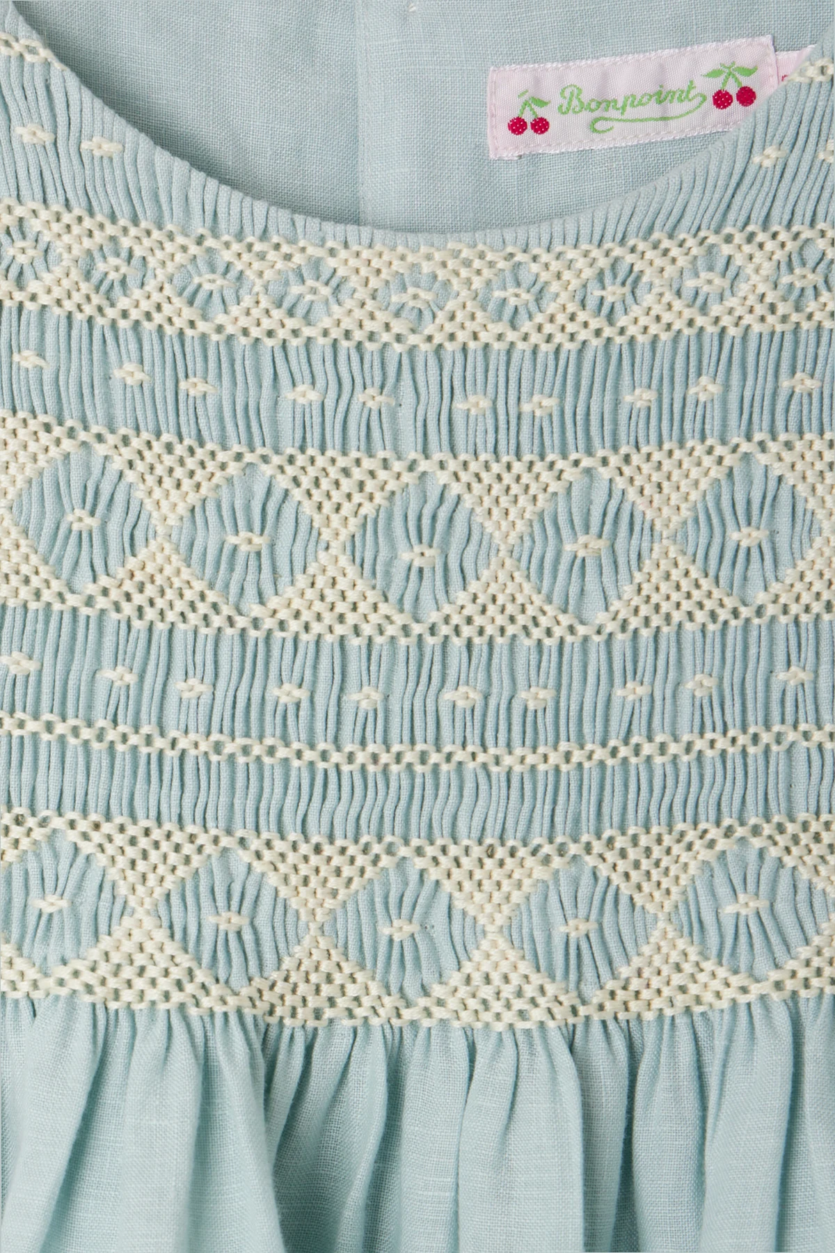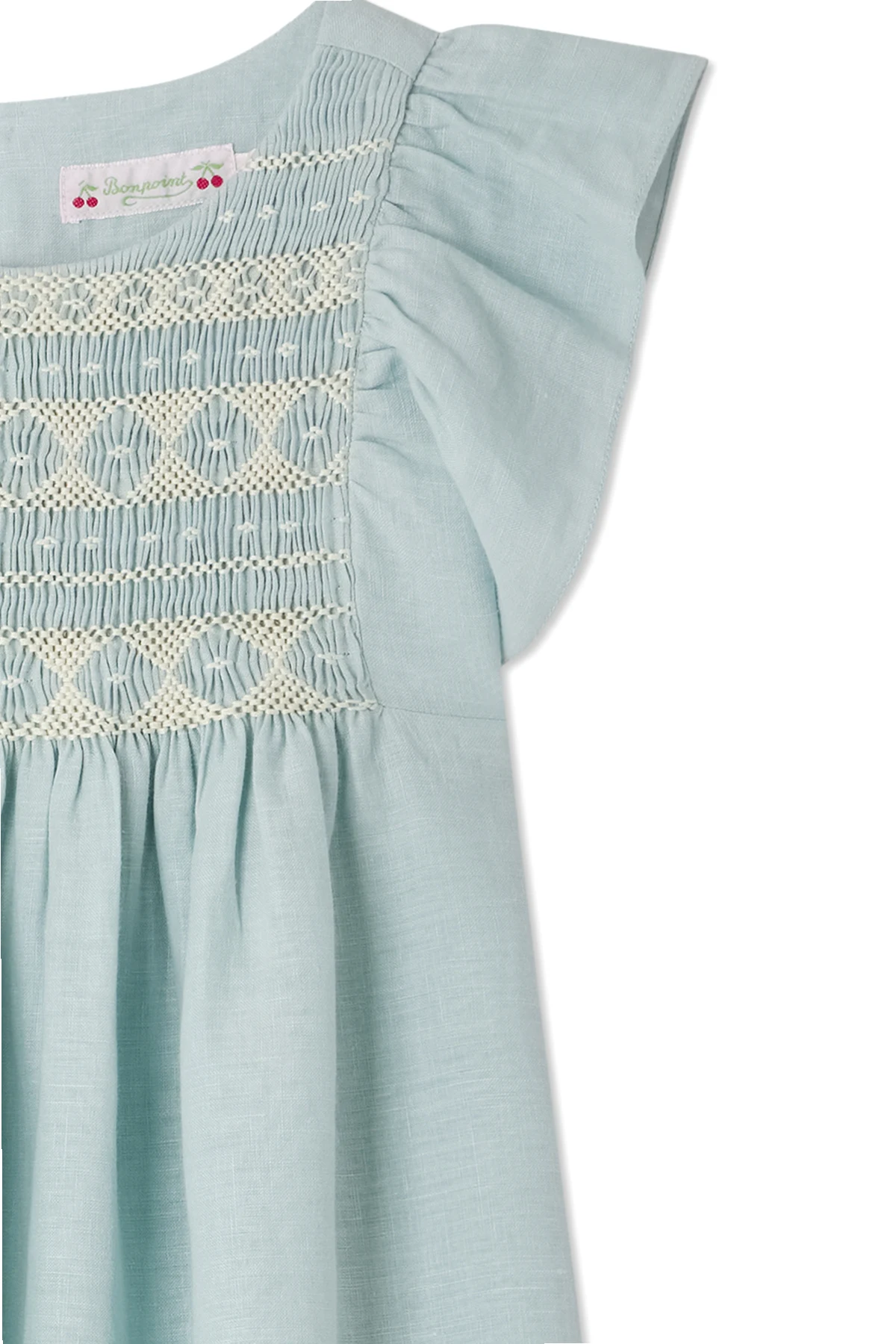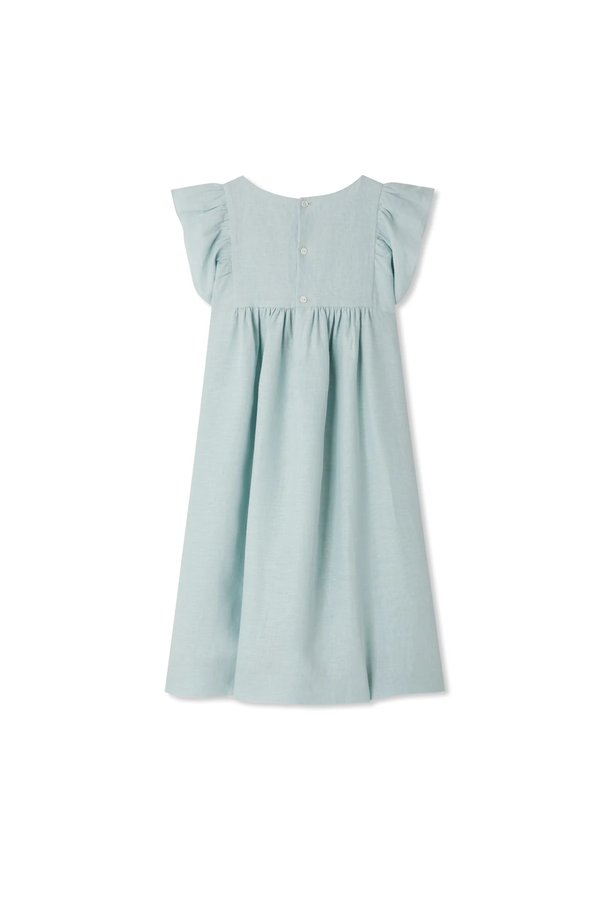 Introducing the Emeraude Linen Dress by the illustrious Bonpoint, a testament to sophistication and timeless elegance. Adorned in a delicate light blue hue, this dress embodies a simple yet graceful silhouette with its loose fit and charmingly ruffled sleeves. The upper part of the dress is embellished with intricate embroidery, adding a touch of finesse and elegance, synonymous with the brand\'s luxurious aesthetic. Crafted from pure linen, its fabric is lightweight and breathable, rendering it ideal for sun-drenched summer days. Distinguished by the brand\'s logo subtly placed on the back label, this dress is more than a garment; it is an emblem of style, worn by the children of renowned families, including the Kennedys and Obamas. With a button closure, it ensures ease and comfort, making it a perfect choice for any occasion. Why Buy This Product? Exquisite embroidery enhancing elegance. Crafted from 100% linen for superior comfort. Signature of the esteemed Bonpoint brand. Perfect for warm, sunny days. Renowned for its classic French elegance.