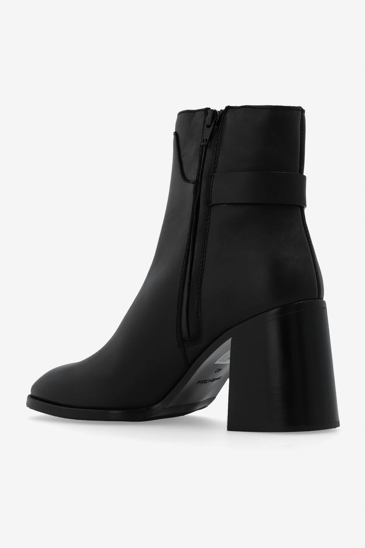 Black ‘Chany’ heeled ankle boots from See By Chloe. Crafted from leather with a round toe, this model sits on a black leather sole and features a side zipper and logo-engraved hardware.