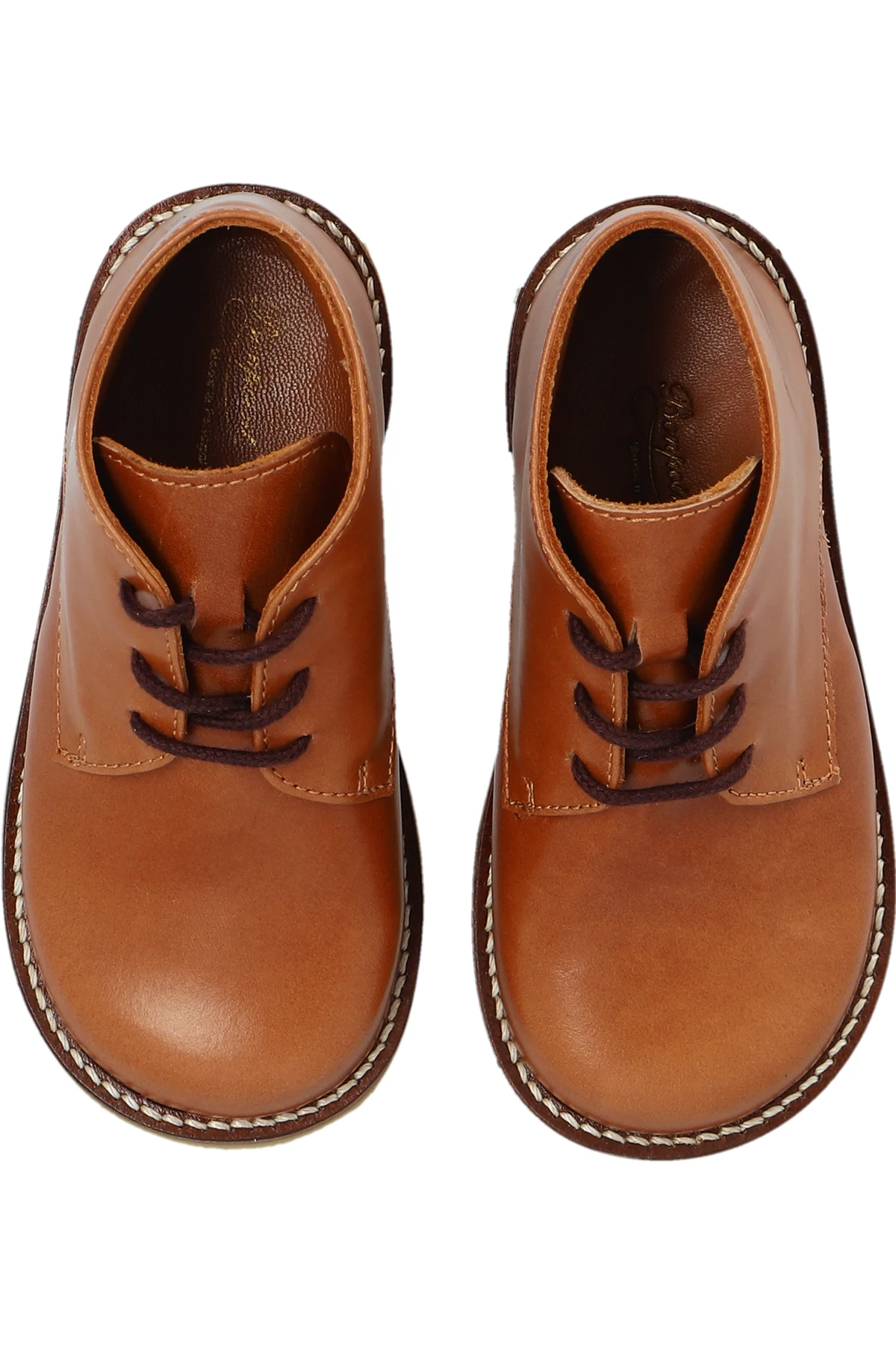 Brown ‘Dao’ Derby shoes from Bonpoint. Made from leather with ankle length, this lace-up model sits on a beige rubber sole and features a round toe.