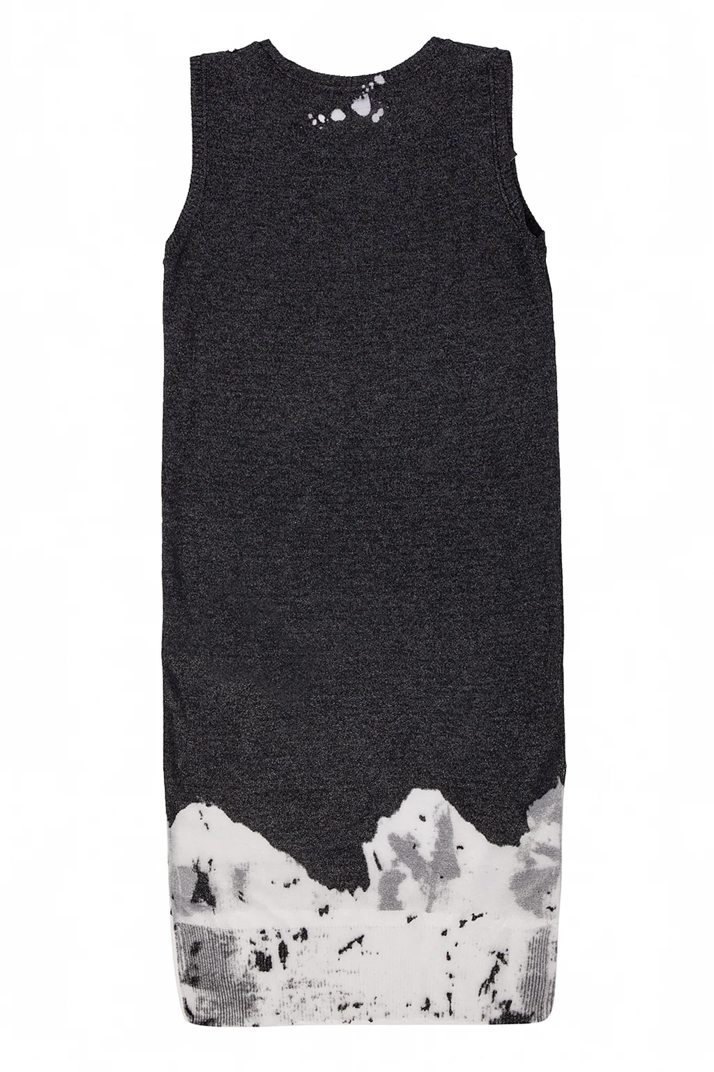 Grey sleeveless dress from Diesel. Decorated with an embroidered pattern. Cut-out details on the sides. Trimmed with a silver-tone lurex thread. Round neck.