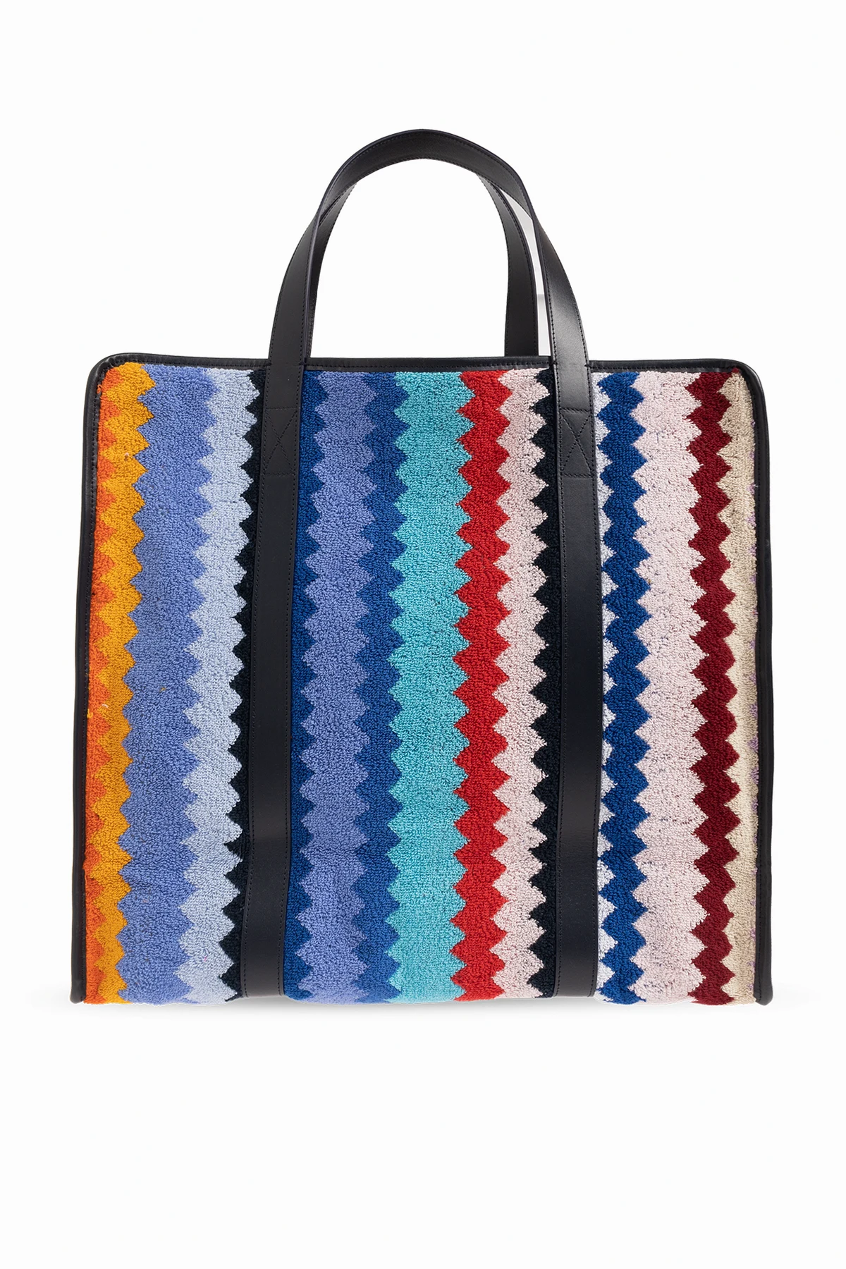 Multicolored shopper bag from Missoni, the ‘Home’ collection. Made of terry cotton, this design features the brand’s signature zig-zag motif, two handles and one internal compartment with two slip pockets.