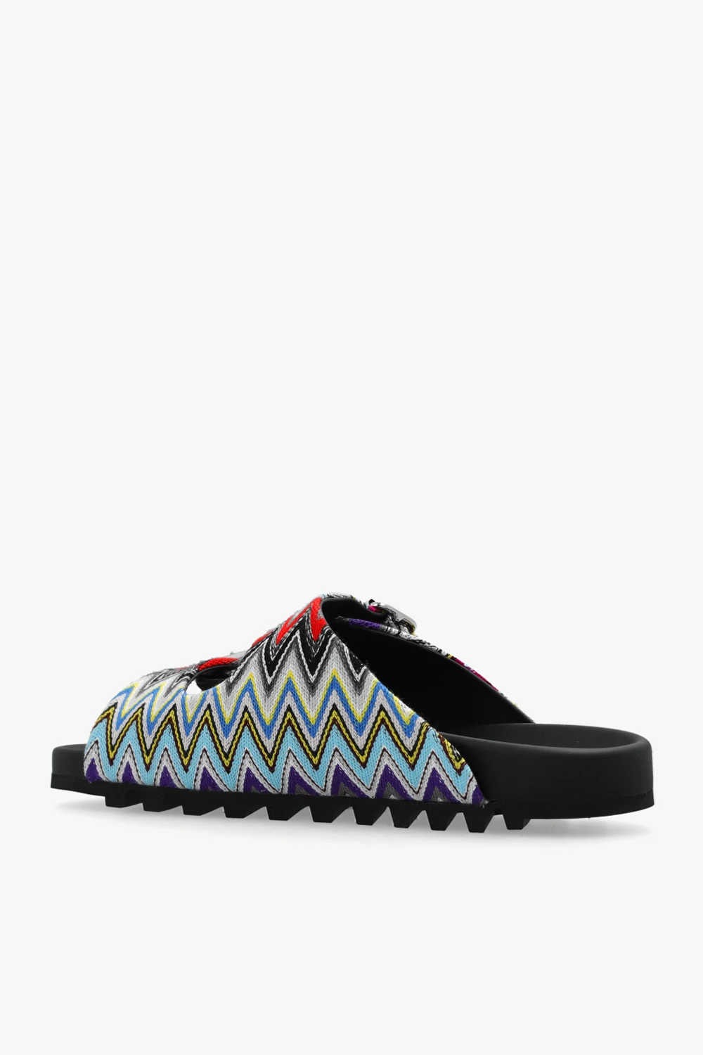 Multicoloured slides from Missoni. Crafted from fabric decorated with the brand\'s signature zigzag motif, this model sits on a black VIBRAM® rubber sole and features adjustable straps with silver-tone buckles.
