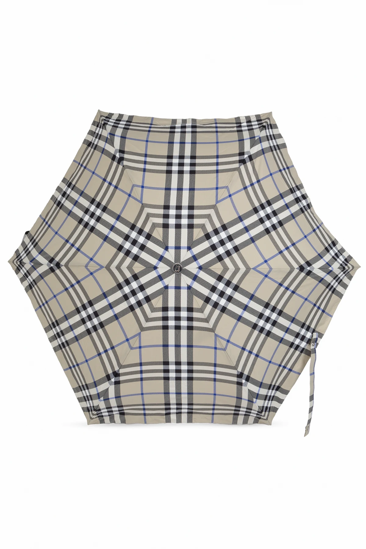 Experience the epitome of sophistication with the Burberry Checkered Umbrella. This timeless accessory, crafted by the renowned English brand Burberry, encapsulates the perfect blend of elegance and functionality. Constructed from high-quality poliamid, this umbrella is both durable and weather-resistant, ensuring you are protected from the elements in style. The classic checkered pattern in shades of gray, black, and blue is symmetrically designed, exuding a refined aesthetic appeal. Its handle, made from dark wood or a wood-like material, offers an ergonomic grip, combining comfort with luxury. The sturdy metal frame is engineered to withstand windy conditions, and the automatic opening mechanism allows for effortless operation. Accompanied by a matching checkered cover with convenient carry straps, this umbrella is easy to store and transport, making it a versatile addition to your wardrobe. Why You Should Buy This Product Elegant and timeless design by Burberry High-quality, weather-resistant poliamid material Ergonomic wooden handle for comfortable grip Sturdy metal frame resistant to wind Automatic opening mechanism for convenience Matching cover with carry straps for easy transport