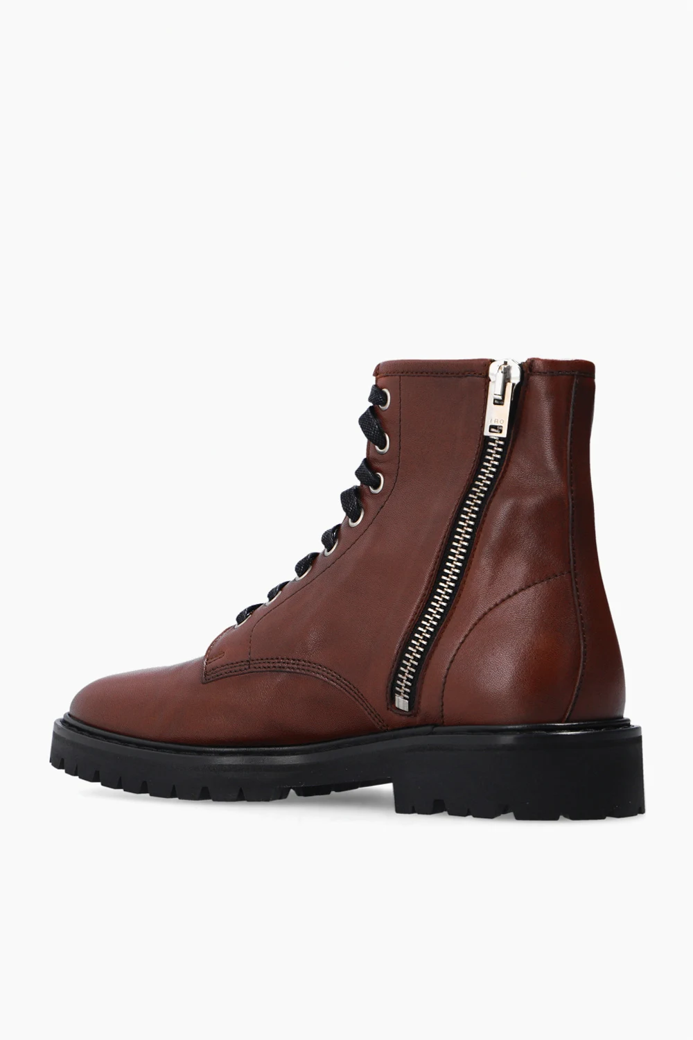 Brown ankle boots from Iro. Crafted from leather with an almond-shaped silhouette, this lace-up pair features a side zip closure and a black rubber sole.