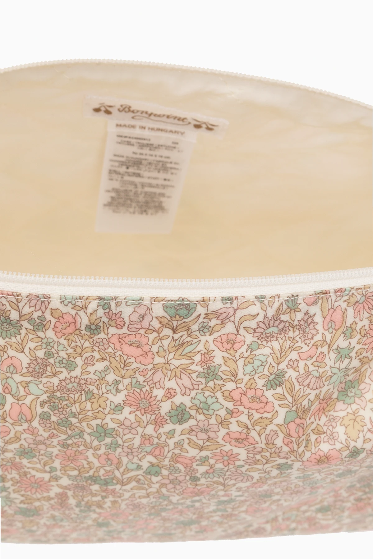 Multicolored wash bag from Bonpoint. Crafted from coated canvas, this design features a zip fastening, floral pattern, one internal compartment and cream metal hardware.