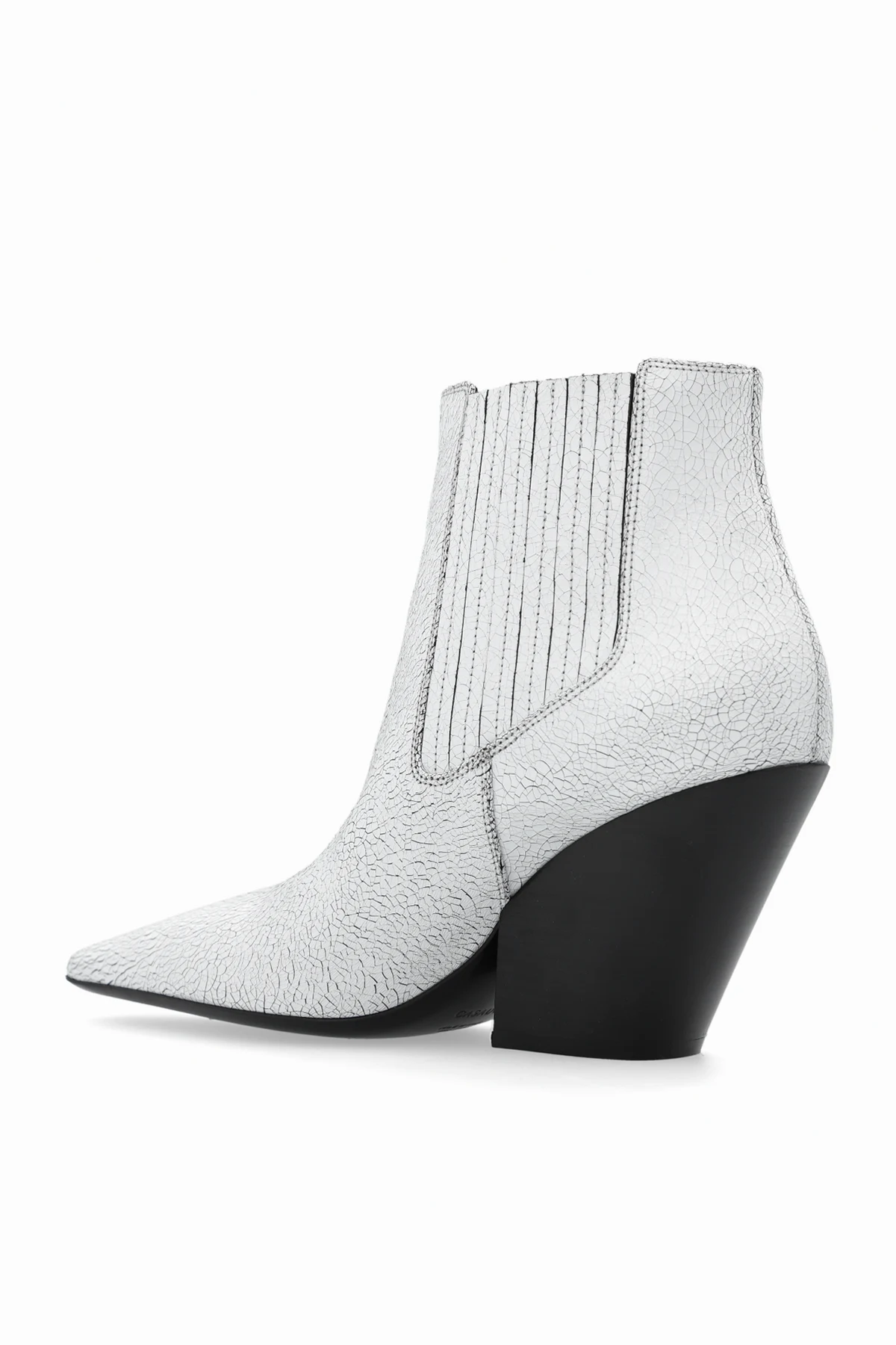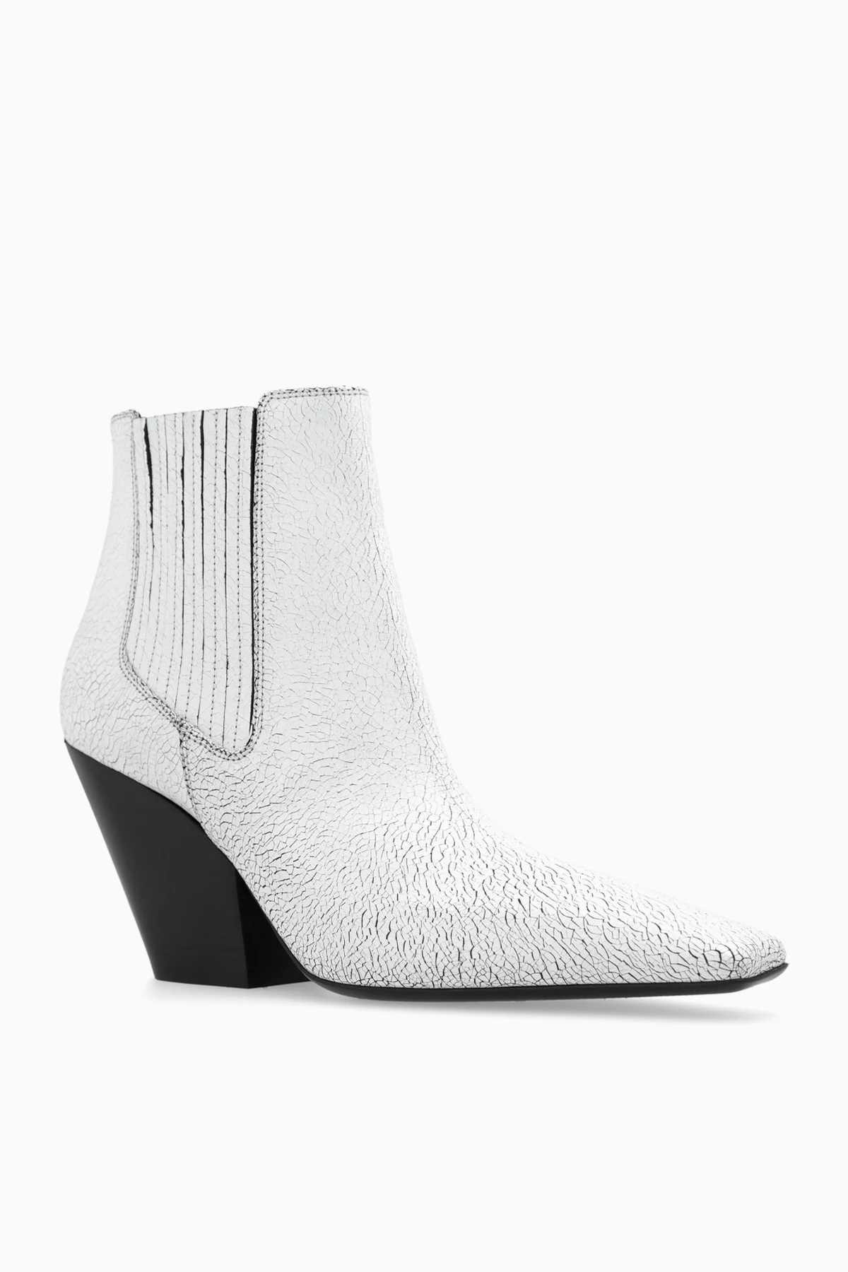 White cowboy boots from Casadei. Made of leather with a cracked effect, this pair features elastic side panels, square pointed toe and black leather sole.