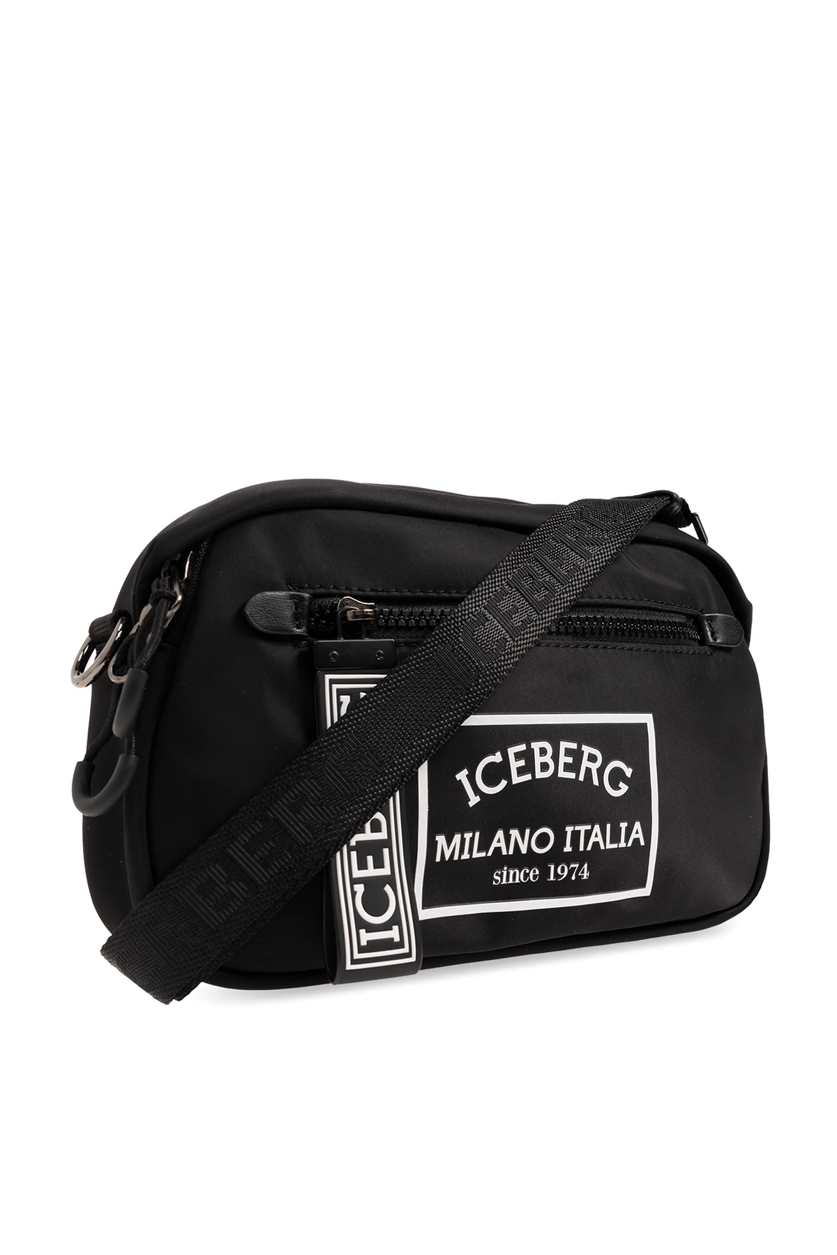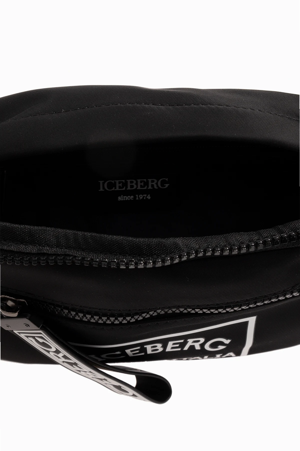 Black belt bag from Iceberg. Fastened with a zip, this design features a zip fastening, zipped front pocket, white logo print, detachable shoulder strap, silver-tone metal hardware and one internal compartment with one zip pocket.