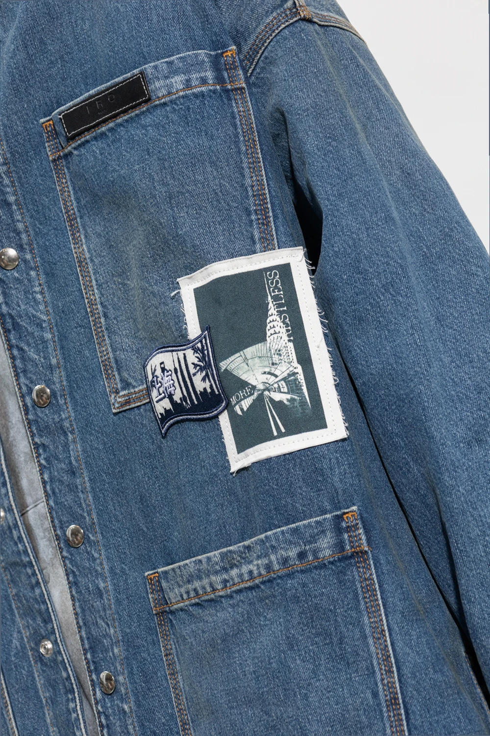 Dark blue loose-fitting shirt from Iro. Made of denim, this garment features snap buttons, logo patches, two front pockets, side vents and long sleeves with snap-fastened cuffs.