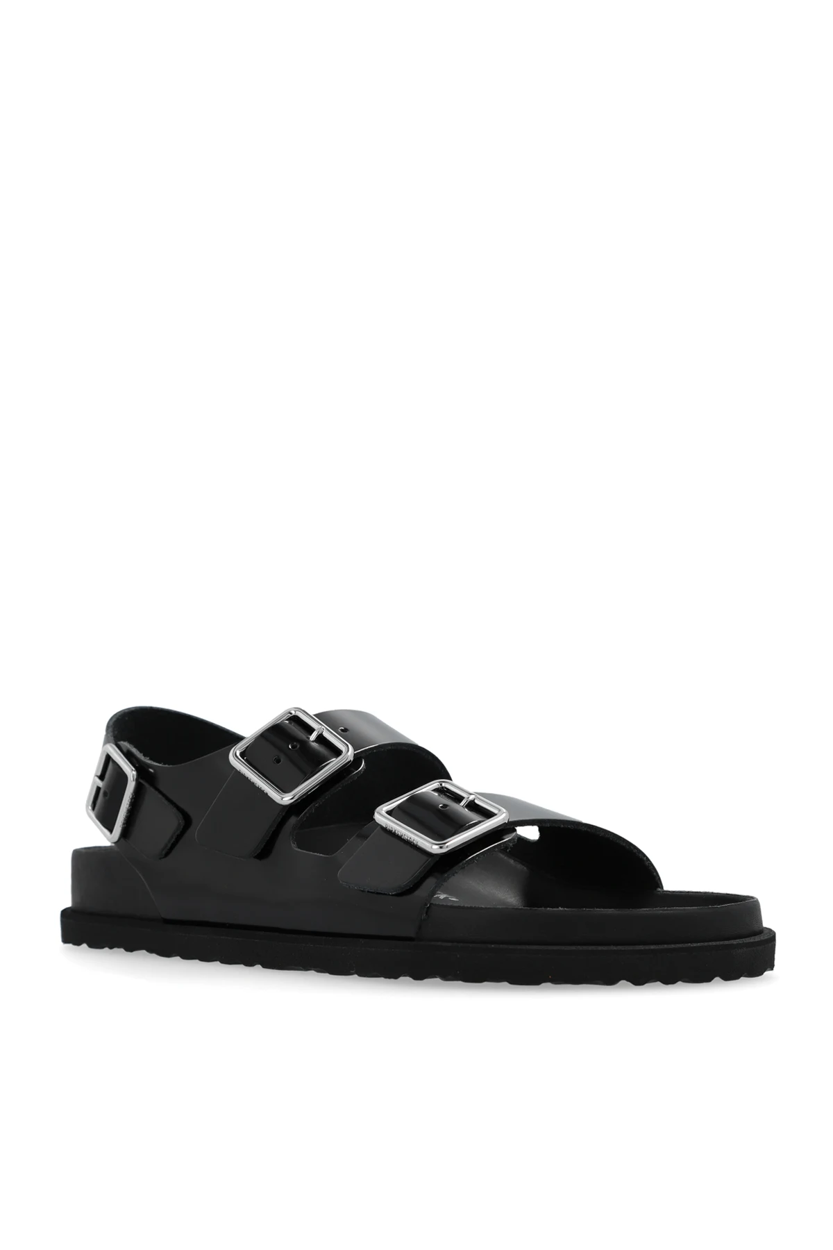Introducing the ‘Milano Avantgarde’ Sandals from the distinguished Birkenstock 1774 Collection, a testament to minimalist elegance and unparalleled comfort. Crafted with meticulous attention to detail, these flat sandals boast a timeless black hue, embodying sophistication and versatility. The sandals feature a classic, open design with two adjustable straps, each adorned with a metallic buckle, seamlessly bridging across the foot for a bespoke fit. The premium leather construction, complemented by a matte finish, speaks volumes of the luxury and durability embedded in every stitch. The flat sole, a harmonious blend of natural cork and EVA foam, ensures a solid foundation with added traction, promising effortless strides. Distinctive details such as the designer\'s logo, either engraved or printed on the insole, accentuate the exclusivity of the ‘Milano Avantgarde’ Sandals. Moreover, the ergonomic shape of the insole suggests an enhanced wearing experience, catering to the contours of your feet for sublime comfort. Why Purchase This Product? Exquisite Craftsmanship: Luxurious leather material and superior construction. Customizable Comfort: Functional buckles on straps allow for optimal adjustability. Signature Details: Exclusive branding that underscores authenticity and designer pedigree. Ergonomic Design: Thoughtfully shaped insole for unparalleled comfort.