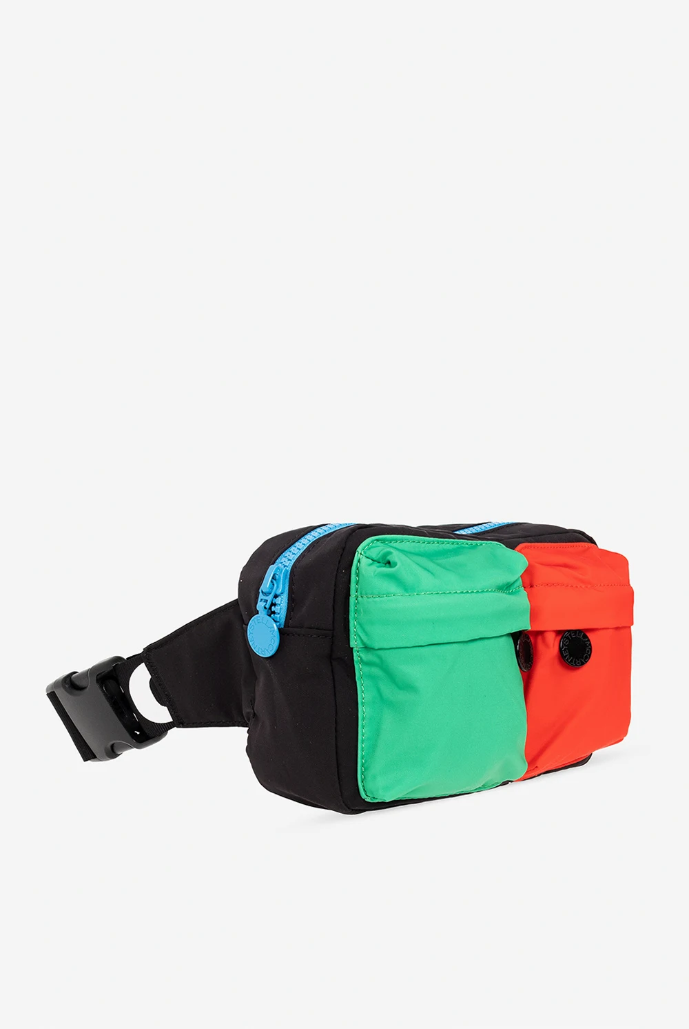 Multicoloured belt bag from Stella McCartney. This design features a zip fastening, two zip front pockets and an adjustable strap printed with a white logo.