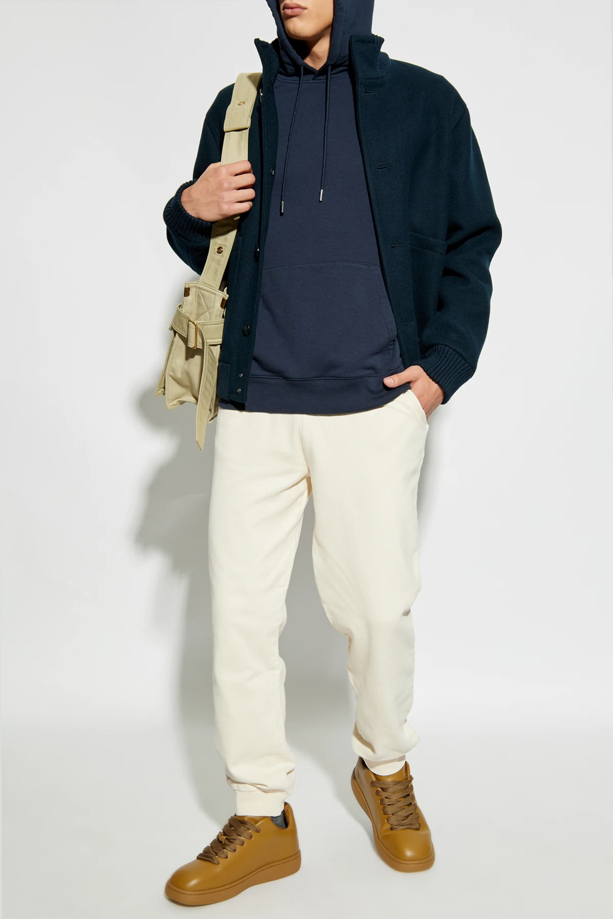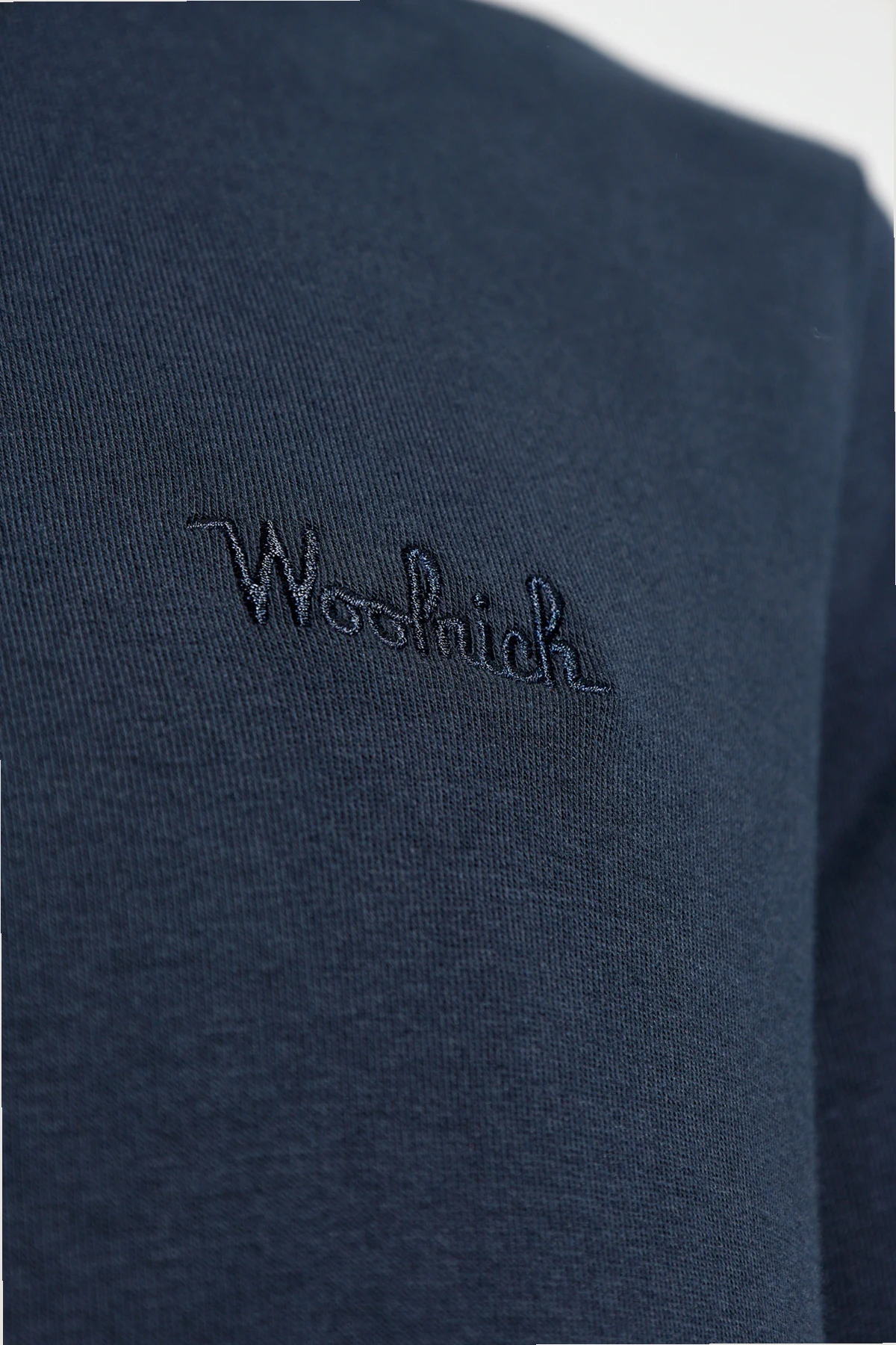 Introducing the Navy Hoodie with Logo from the exclusive collection by Woolrich, a brand synonymous with enduring quality and timeless American craftsmanship since 1830. This hoodie epitomizes elegance and comfort, making it an indispensable addition to any discerning wardrobe. Crafted from a luxurious blend of cotton and polyester, this hoodie promises a soft touch and lasting warmth. The classic silhouette features a hood with adjustable drawstrings, ensuring a perfect fit and added style. The design boasts a subtle designer logo on the left chest, intricately crafted in matching navy tones for a refined yet understated look. The front kangaroo pocket enhances both functionality and aesthetic appeal, providing a cozy space for your hands or essentials. Ribbed cuffs and hem complete the piece, ensuring a snug fit while maintaining its relaxed and comfortable shape. The hoodie’s versatility is showcased through various styling options, from casual daywear to elevated evening ensembles. Why Choose This Product? Exquisite blend of cotton and polyester for ultimate comfort Adjustable hood with drawstrings for a tailored fit Subtle, elegant logo that adds a touch of sophistication Functional kangaroo pocket for added convenience Ribbed cuffs and hem for a secure and comfortable fit