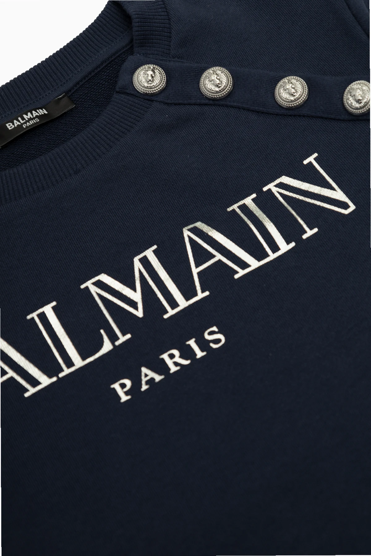 Introducing the epitome of luxury in everyday wear: the Balmain Kids Navy Zip-Up Hoodie. This exquisite piece, characterized by its deep navy hue, seamlessly blends classic style with a touch of modern flair. At the forefront of its design, a prominent white logo print announces the designer\'s mark, creating an immediate visual impact. The hoodie\'s silhouette is defined by its long sleeves and a round neckline, offering a timeless appeal. However, it\'s the row of decorative silver buttons adorning one shoulder that sets this piece apart, infusing it with an air of exclusivity. These buttons, beyond their functional role, serve as a signature element, potentially iconic to the Balmain Kids collection. Crafted from 100% organic cotton, the fabric presents a medium-thick knit with a discernible texture, promising both comfort and durability. Its elasticity ensures a perfect fit, accommodating the lively movements of its youthful wearers. Why Purchase This Product? Exemplary of Balmain Kids\' commitment to luxury and quality. Features a distinctive designer logo and unique shoulder button detail. Made from high-quality, organic cotton for utmost comfort and sustainability. The perfect blend of classic design and modern elegance.
