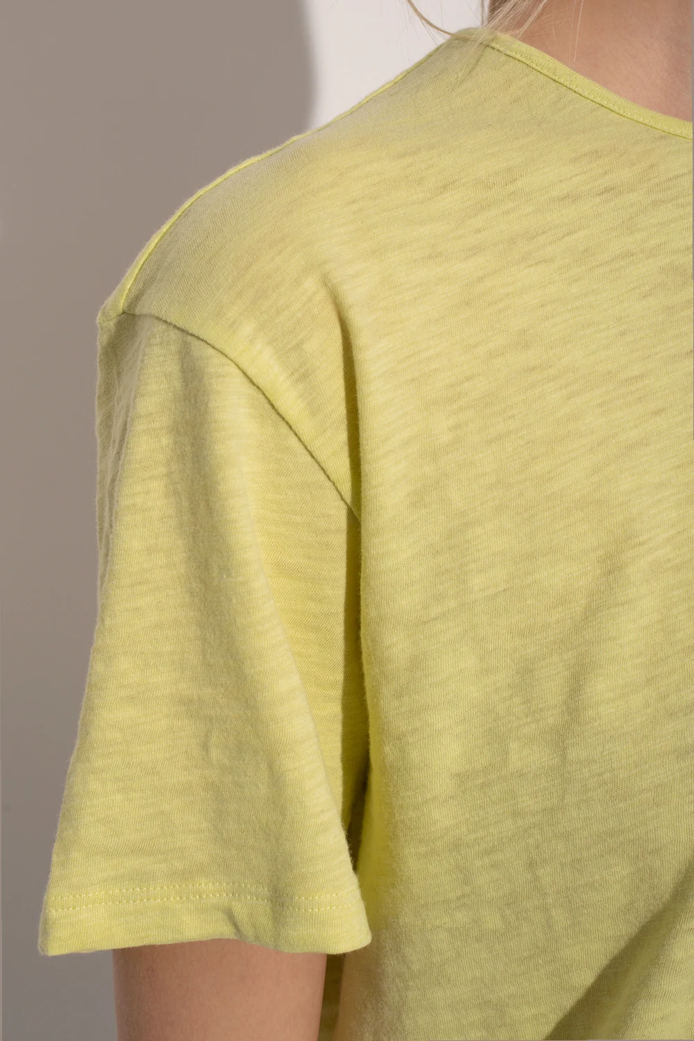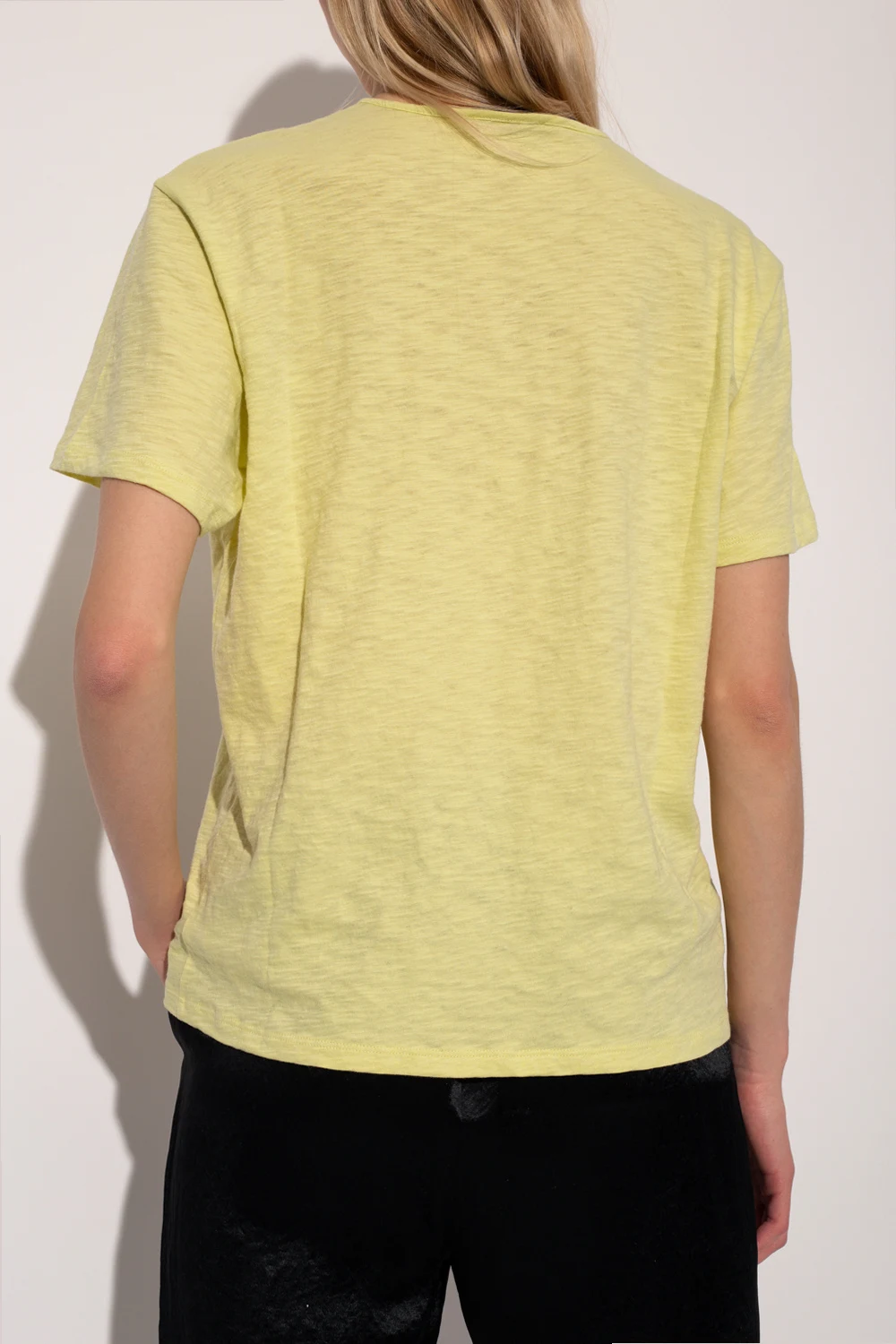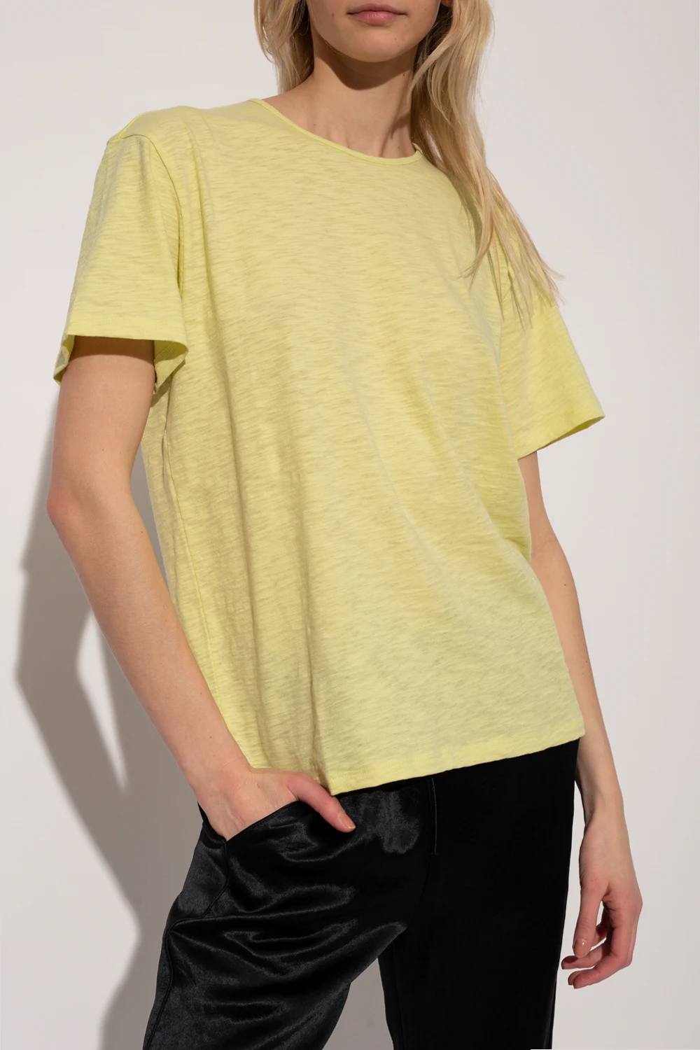 Light green crewneck T-shirt with short sleeves from Theory. Made of textured cotton.