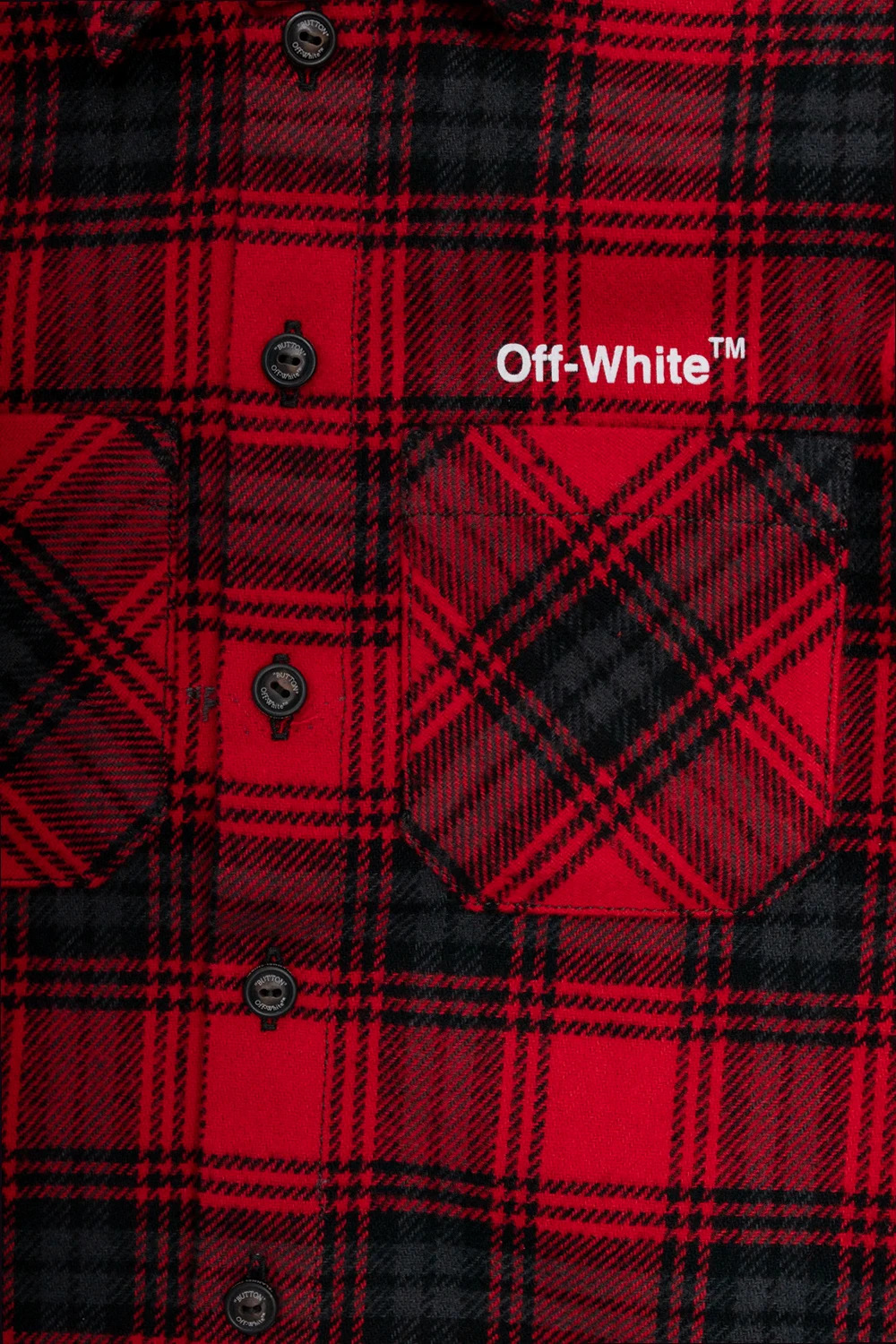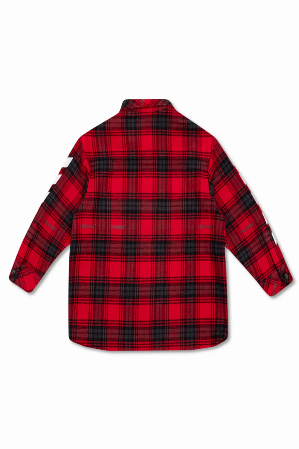 Red shirt from Off-White Kids. Fastened with buttons, this garment features a black and grey check pattern, white logo print, two front pockets and long sleeves with button cuffs.