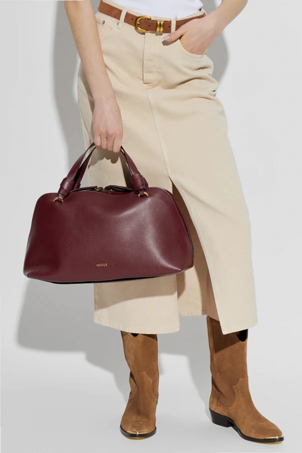 The ‘Aries’ Handbag by NEOUS exudes timeless sophistication, combining artful minimalism with refined structure. Its gently rounded, half-moon silhouette is accentuated by a softly contoured upper edge and reinforced sides that maintain an elegant shape. Crafted from premium natural leather with a matte finish, its delicate fine grain offers a tactile sense of exclusivity, echoing the standards of high-end collections. The design’s gracefully unadorned exterior amplifies its luxurious, enduring appeal, while the central gold-embossed NEOUS logo adds an unmistakable touch of distinction. Complemented by gold-toned hardware at the handles and a precisely set top zipper closure, this handbag epitomizes understated opulence and superior craftsmanship. A thoughtfully chosen lining ensures a seamless, elegant interior. Why choose this product? Exquisite matte natural leather with a refined texture Distinctive, ergonomically contoured half-moon shape Elegant gold accents and subtle designer branding Minimalist yet structurally resilient design Perfect for elevating both everyday and formal ensembles